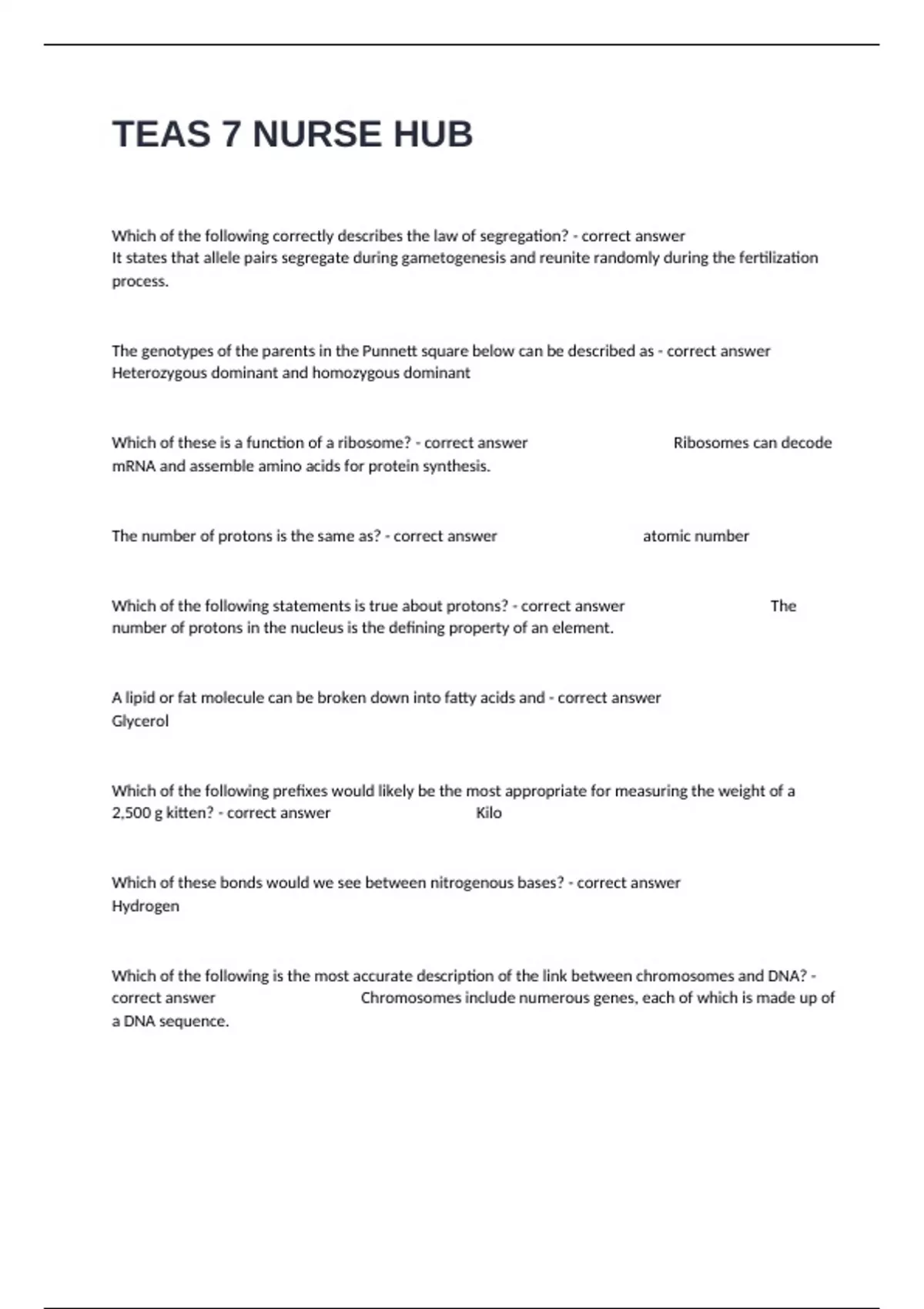 TEAS 7 NURSE HUB Exam Reported Questions Well Answered Guaranteed Pass.