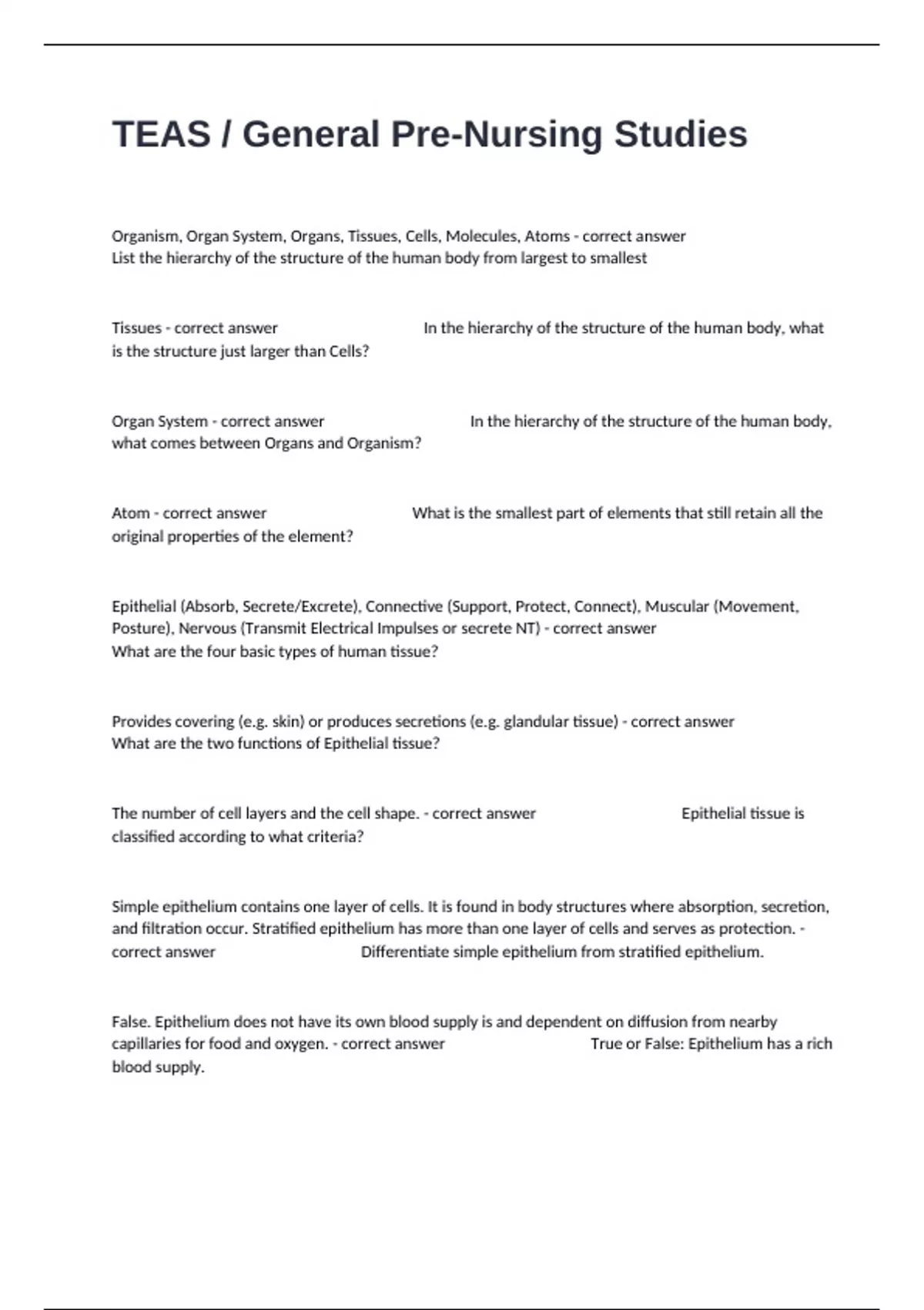 Tissues - correct answer In the hierarchy of the structure of the human body, what