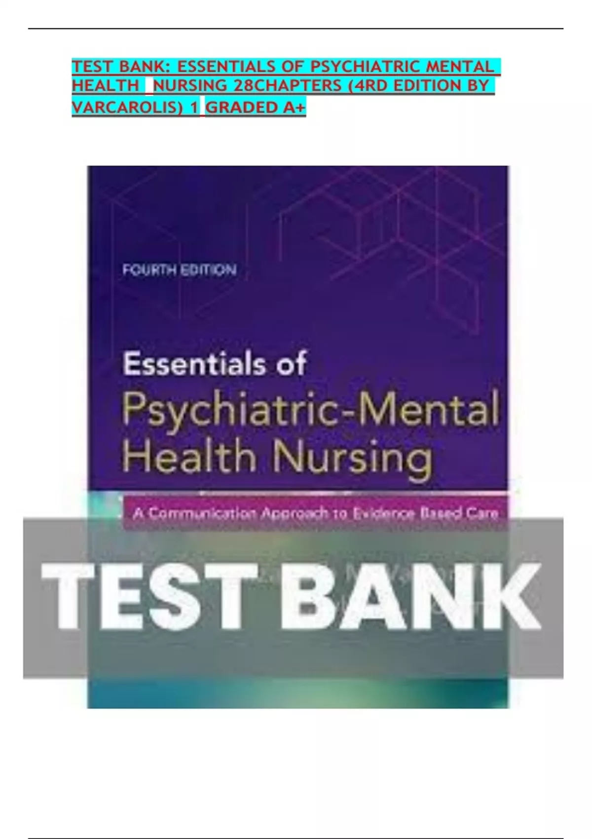 ,Test Bank:uyEssentialsuyofuyPsychiatricuyMentaluyHealthuyNursinguy(4rduyEditionuybyuyVarcarolis)uy2
