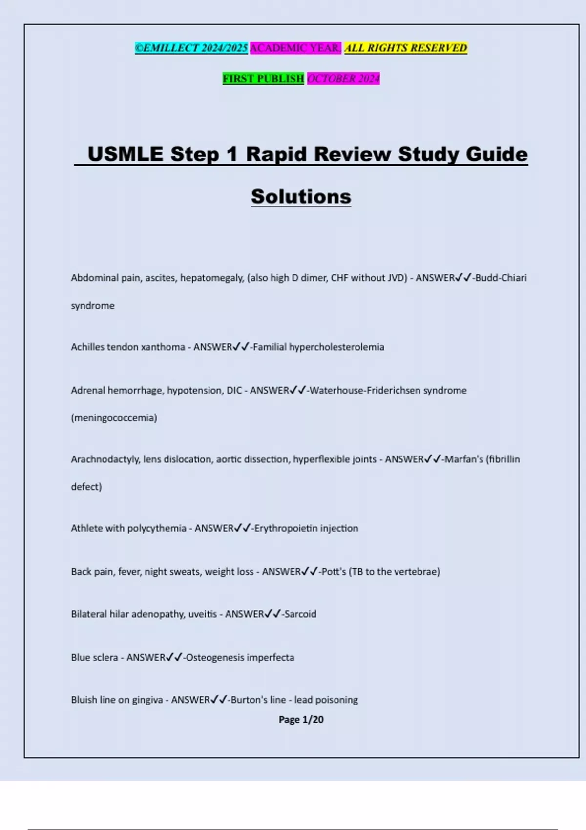 USMLE Step 1 Rapid Review Study Guide