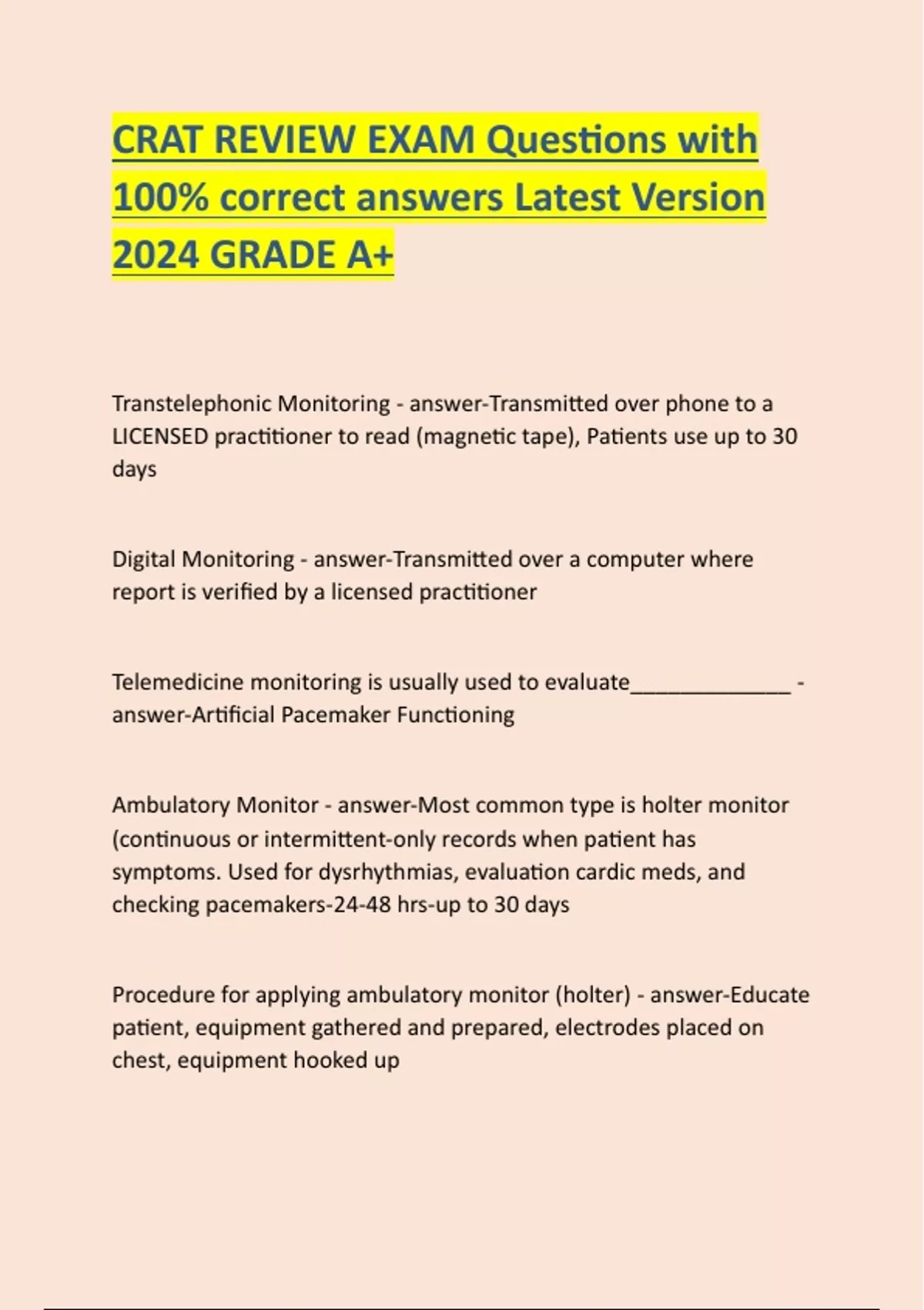 CRAT REVIEW EXAM Questions with 100- correct answers Latest Version 2024 GRADE A+