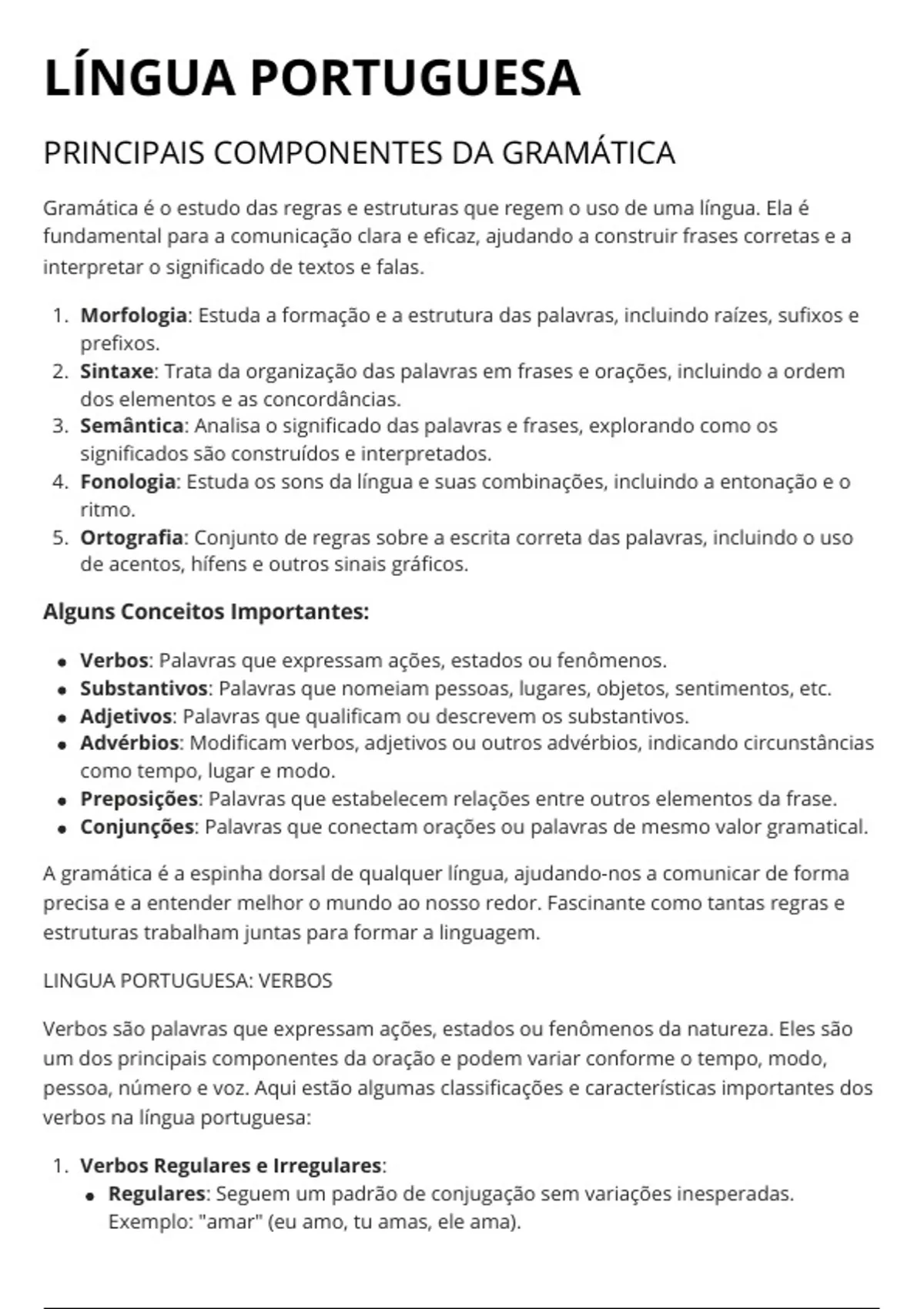 Gramática é o estudo das regras e estruturas que regem o uso de uma língua. Ela é fundamental para a comunicação clara e eficaz, ajudando a construir frases corretas e a interpretar o significado de textos e falas.