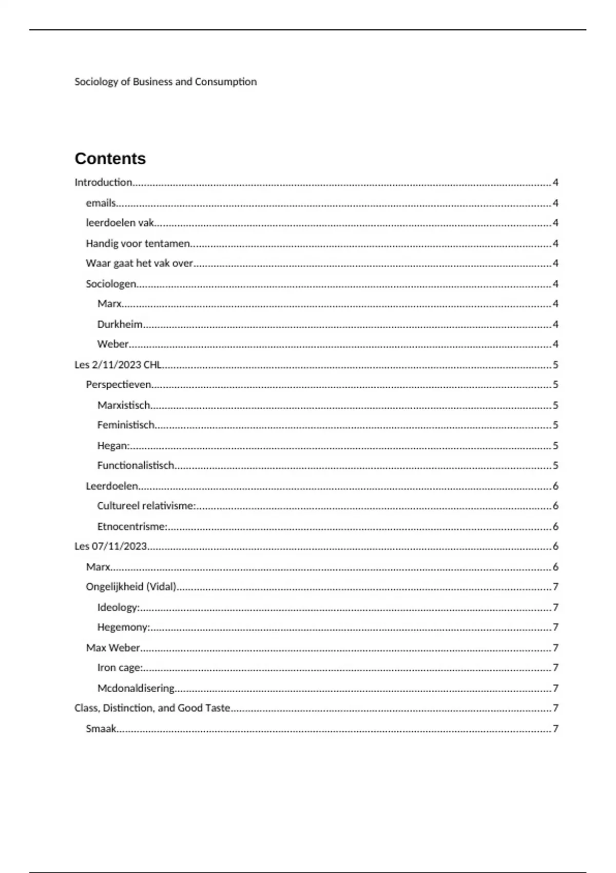 ,Klasse en consumptie..............................................................................................................................7