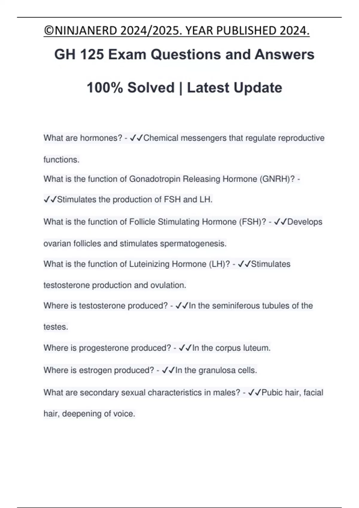 GH 125 Exam Questions and Answers