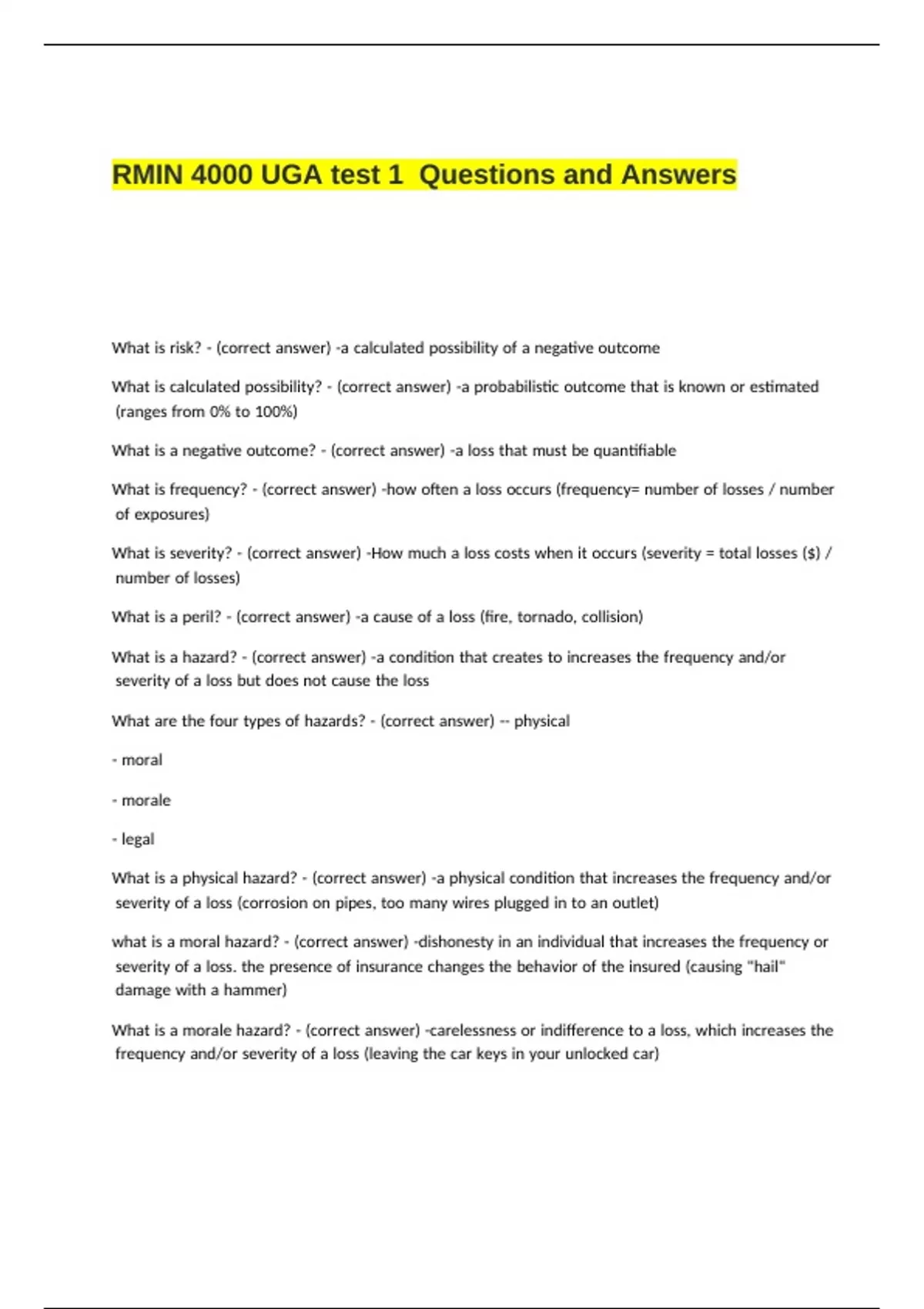 RMIN 4000 UGA test 1 Questions and Answers