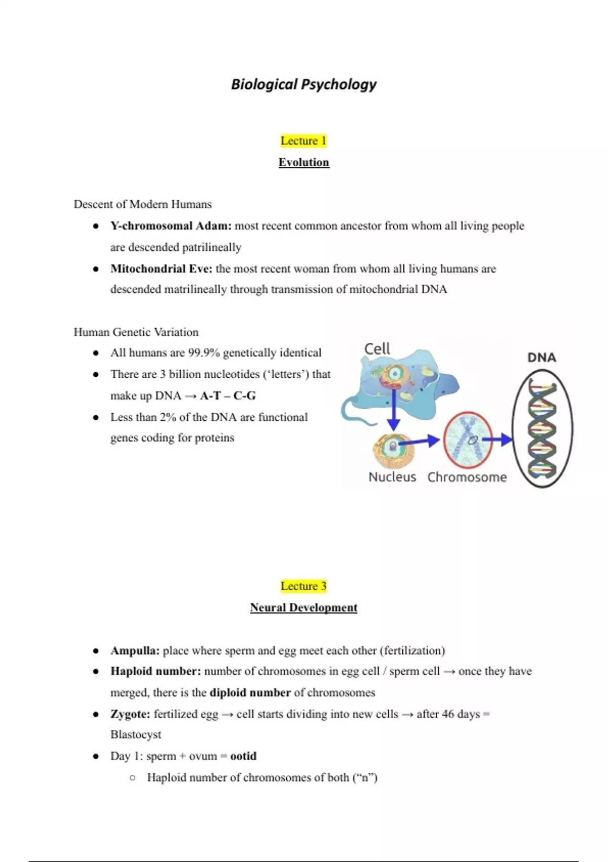 A summary of lectures 1, 3 and 5 of Biological Psychology including some images from lecture slides. Good luck studying! :)