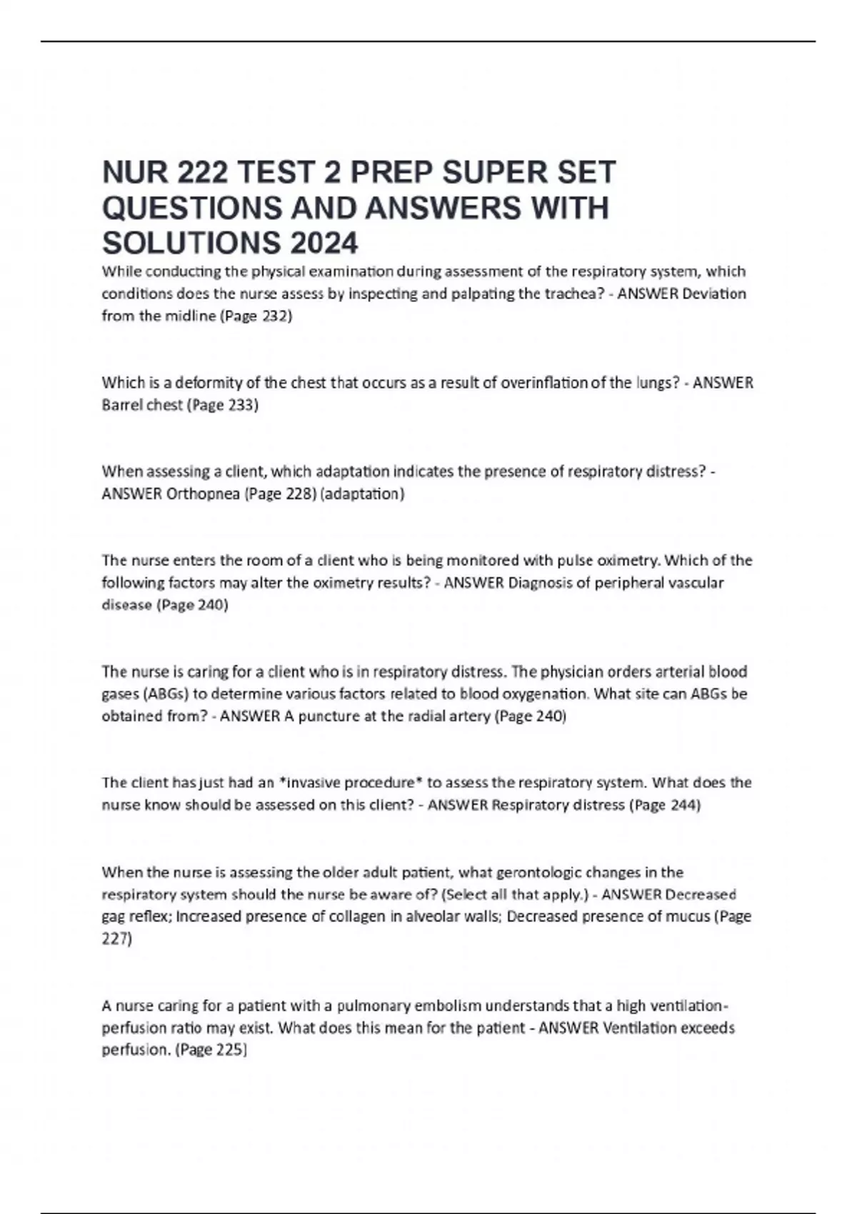NUR 222 TEST 2 PREP SUPER SET QUESTIONS AND ANSWERS WITH SOLUTIONS 2024
