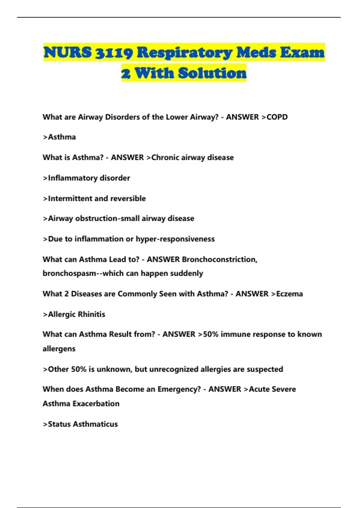 What is Asthma? - ANSWER >Chronic airway disease