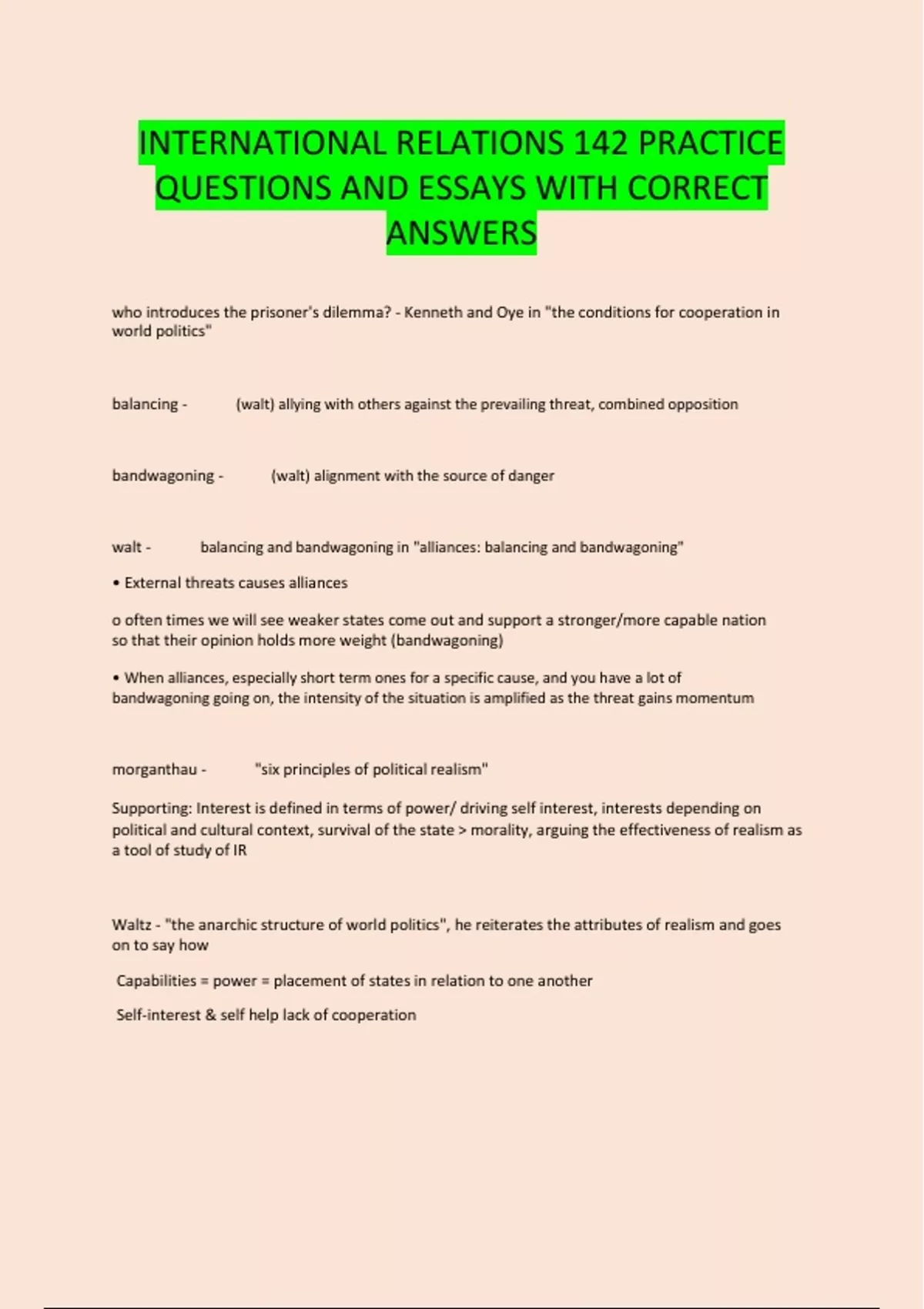 INTERNATIONAL RELATIONS 142 PRACTICE