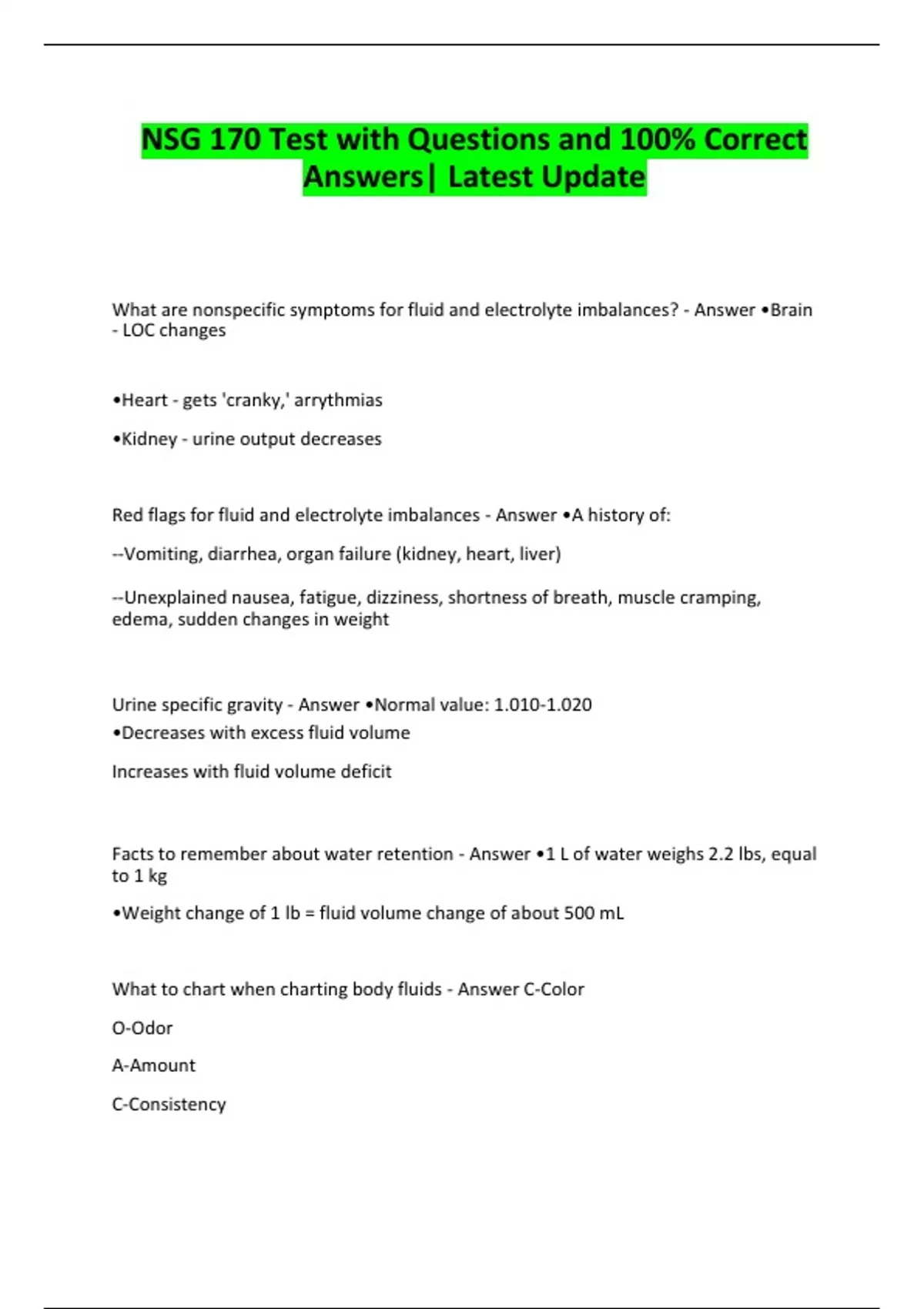 NSG 170 Test with Questions and 100% Correct