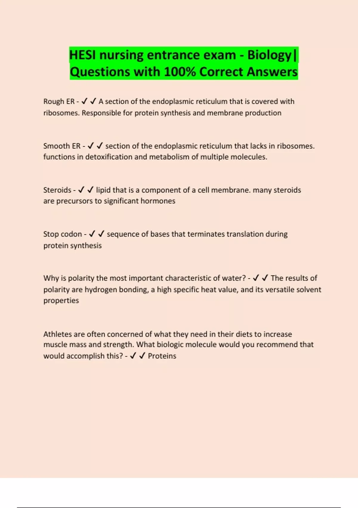 HESI nursing entrance exam - Biology| Questions with 100% Correct Answers
