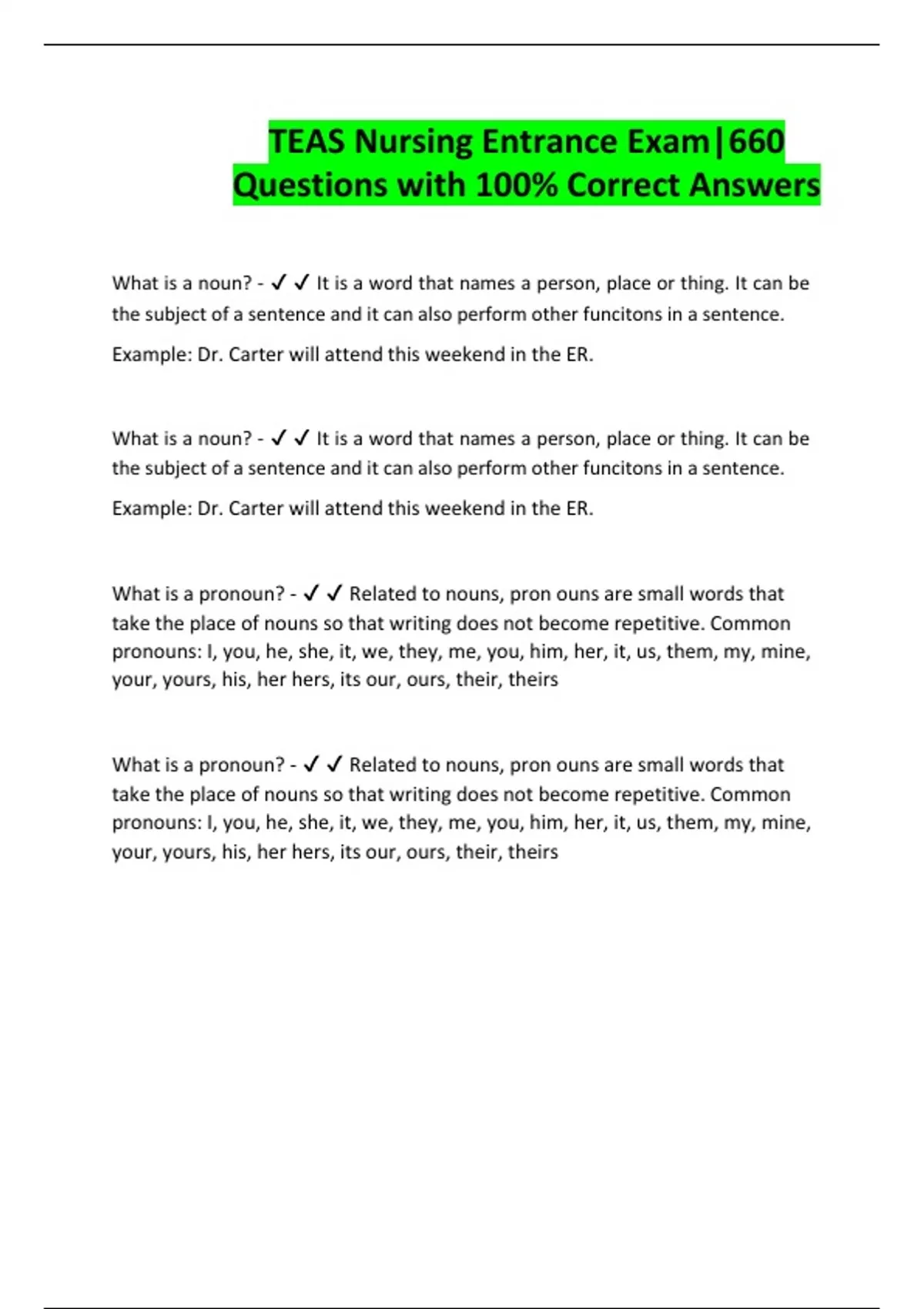 TEAS Nursing Entrance Exam|660 Questions with 100% Correct Answers