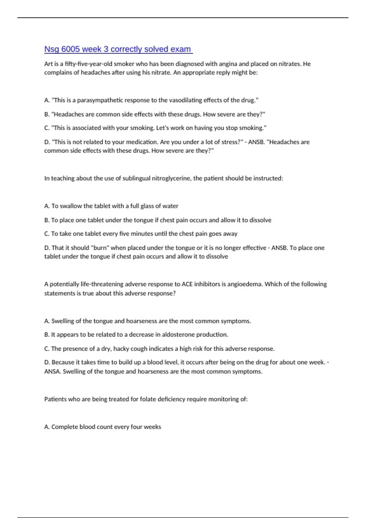 Nsg 6005 week 3 correctly solved exam. Tested and approved 100%