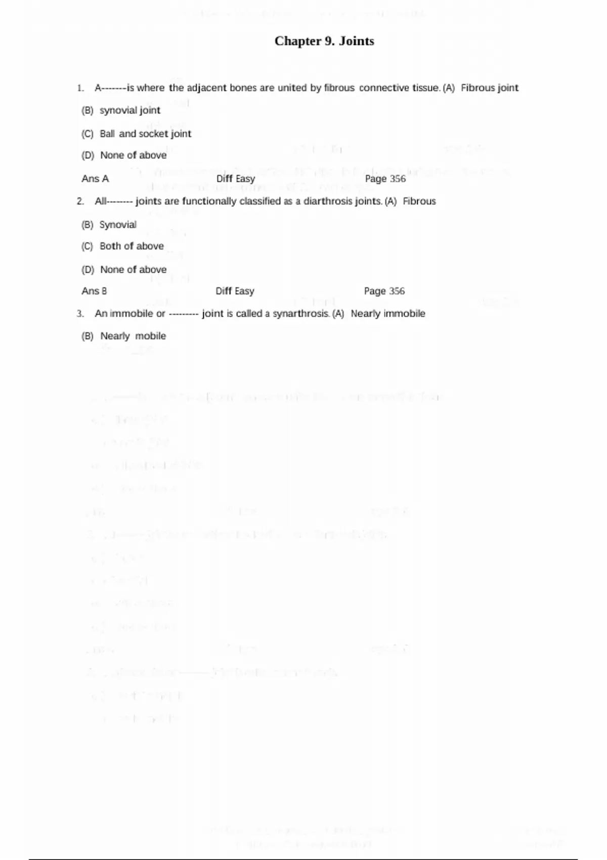 3. An immobile or --------- joint is called a synarthrosis. (A) Nearly immobile