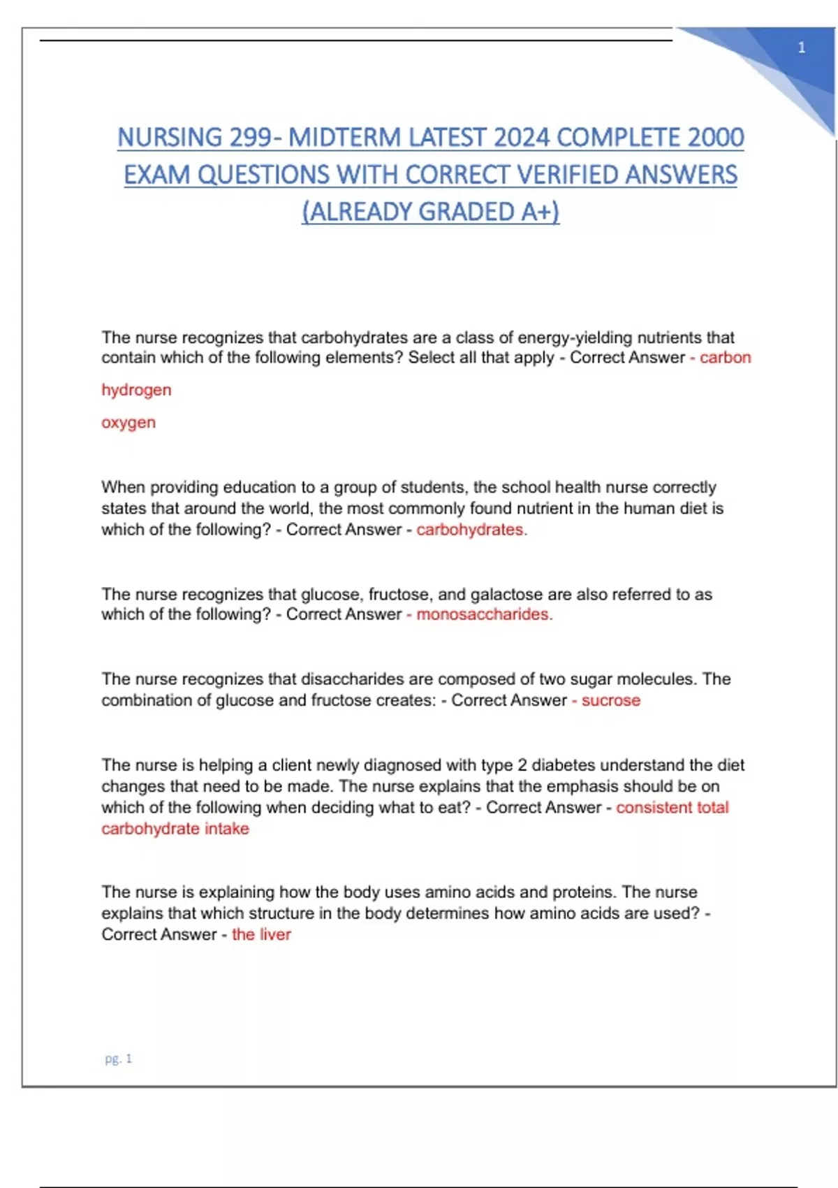 NURSING 299 - MIDTERM LATEST 2024 COMPLETE 2000