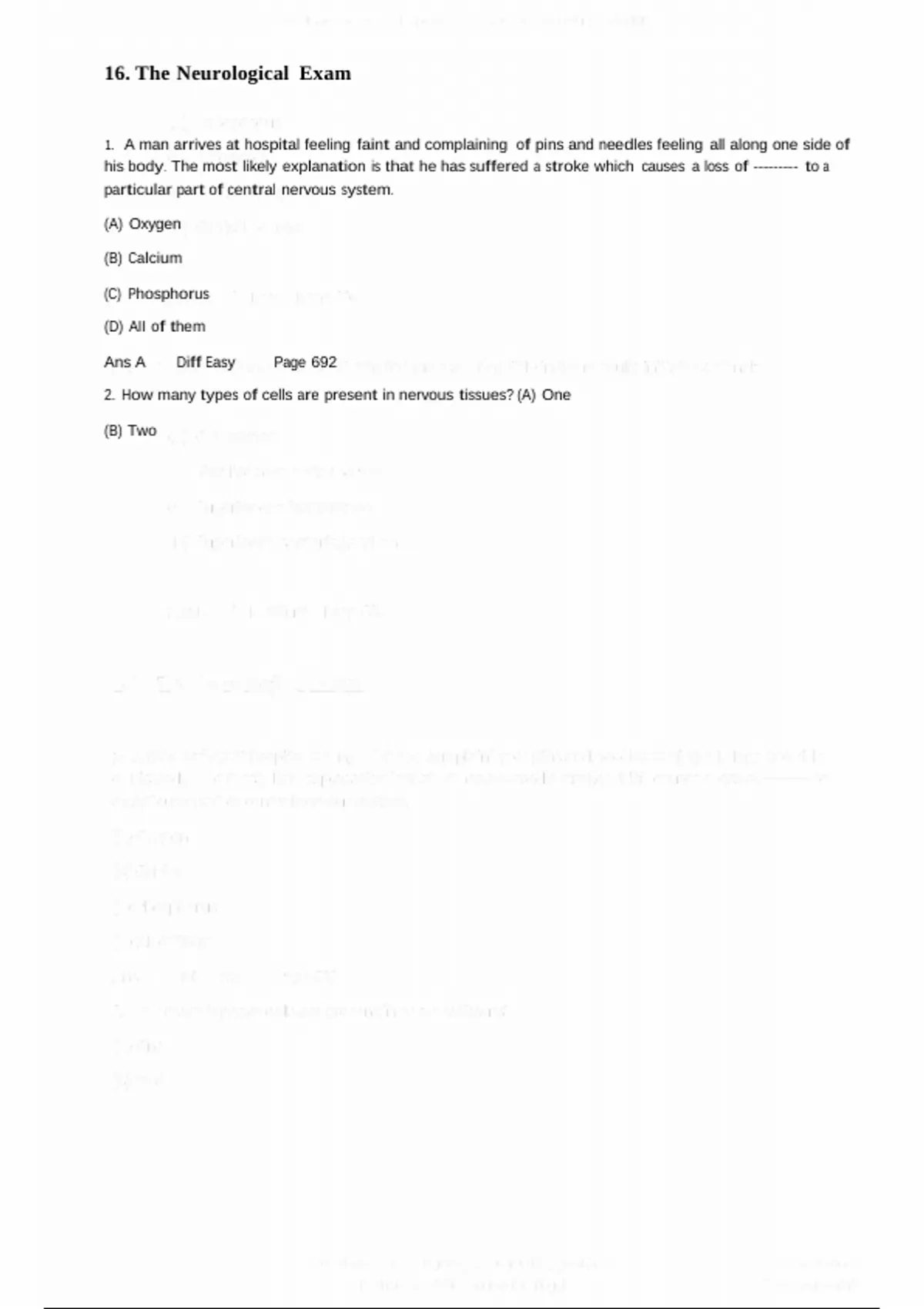 1. A man arrives at hospital feeling faint and complaining of pins and needles feeling all along one side of