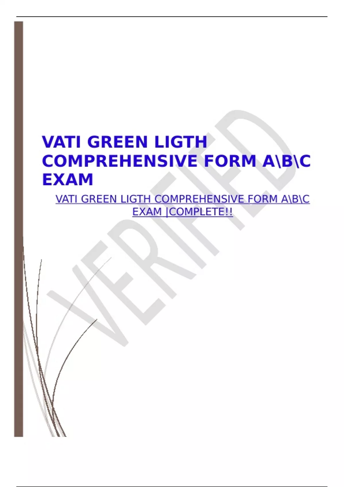 VATI GREEN LIGTH COMPREHENSIVE FORM ABC EXAM |COMPLETE!!