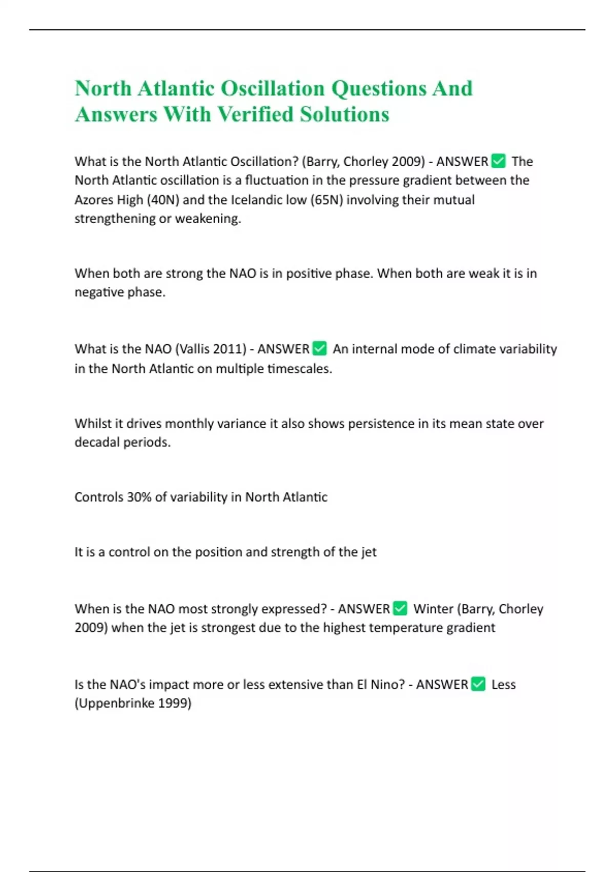 North Atlantic Oscillation Questions And Answers With Verified Solutions