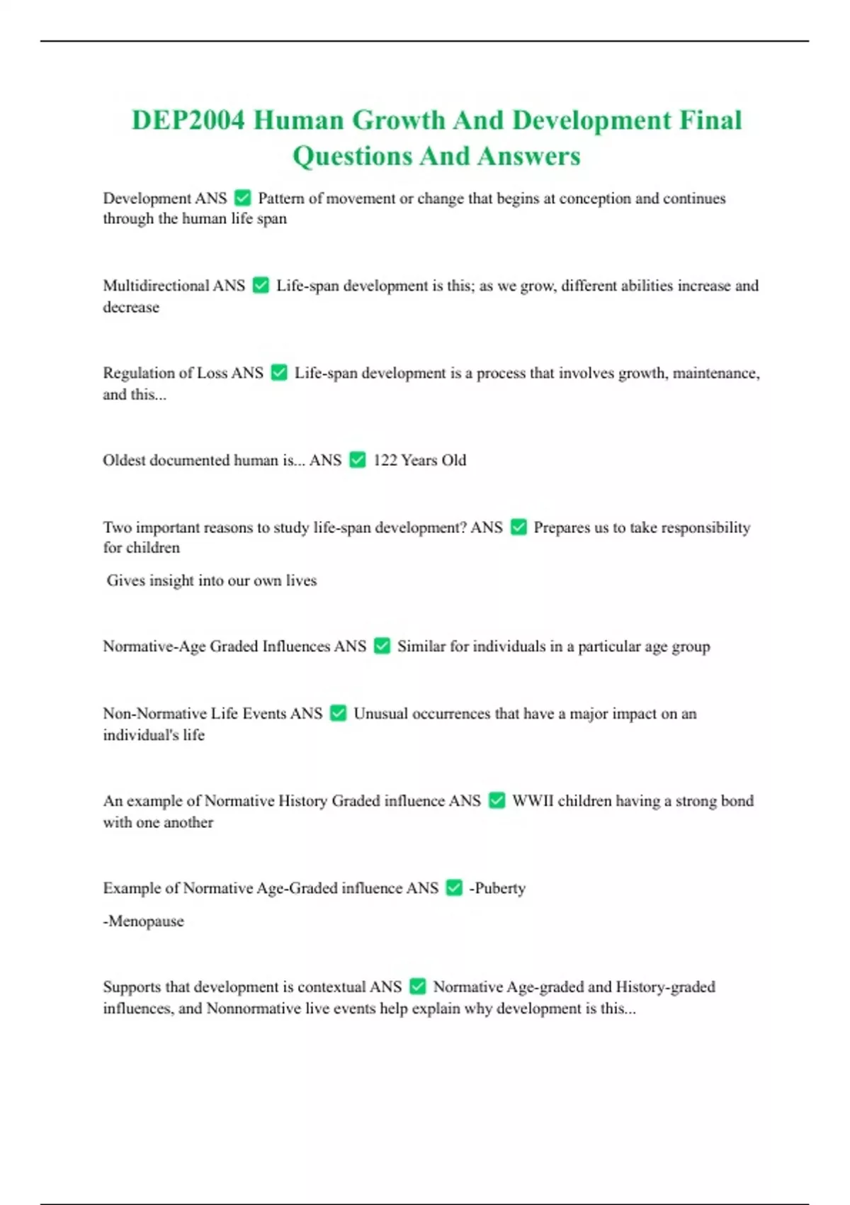 Two important reasons to study life-span development? ANS Prepares us to take responsibility