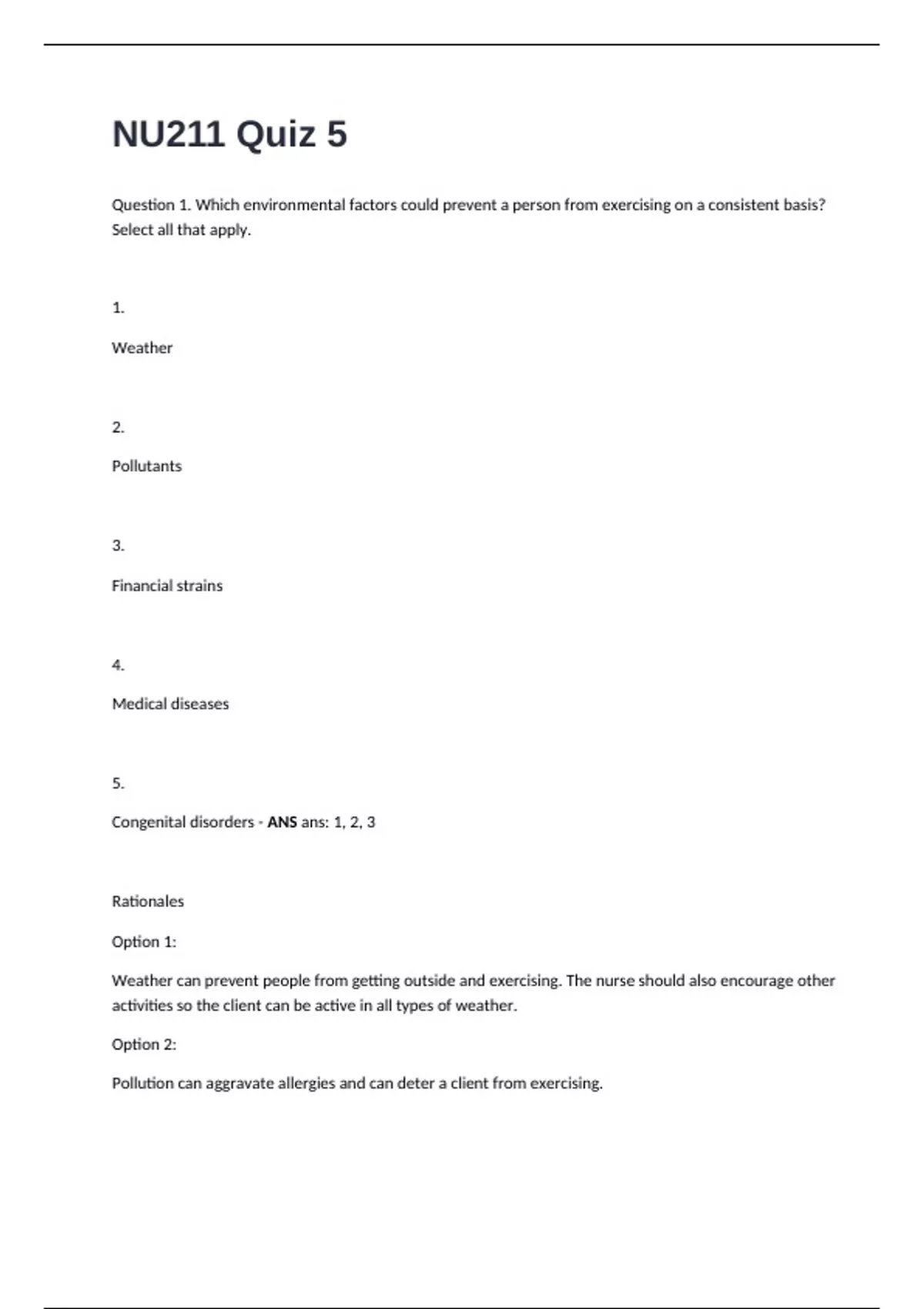 Question 1. Which environmental factors could prevent a person from exercising on a consistent basis?