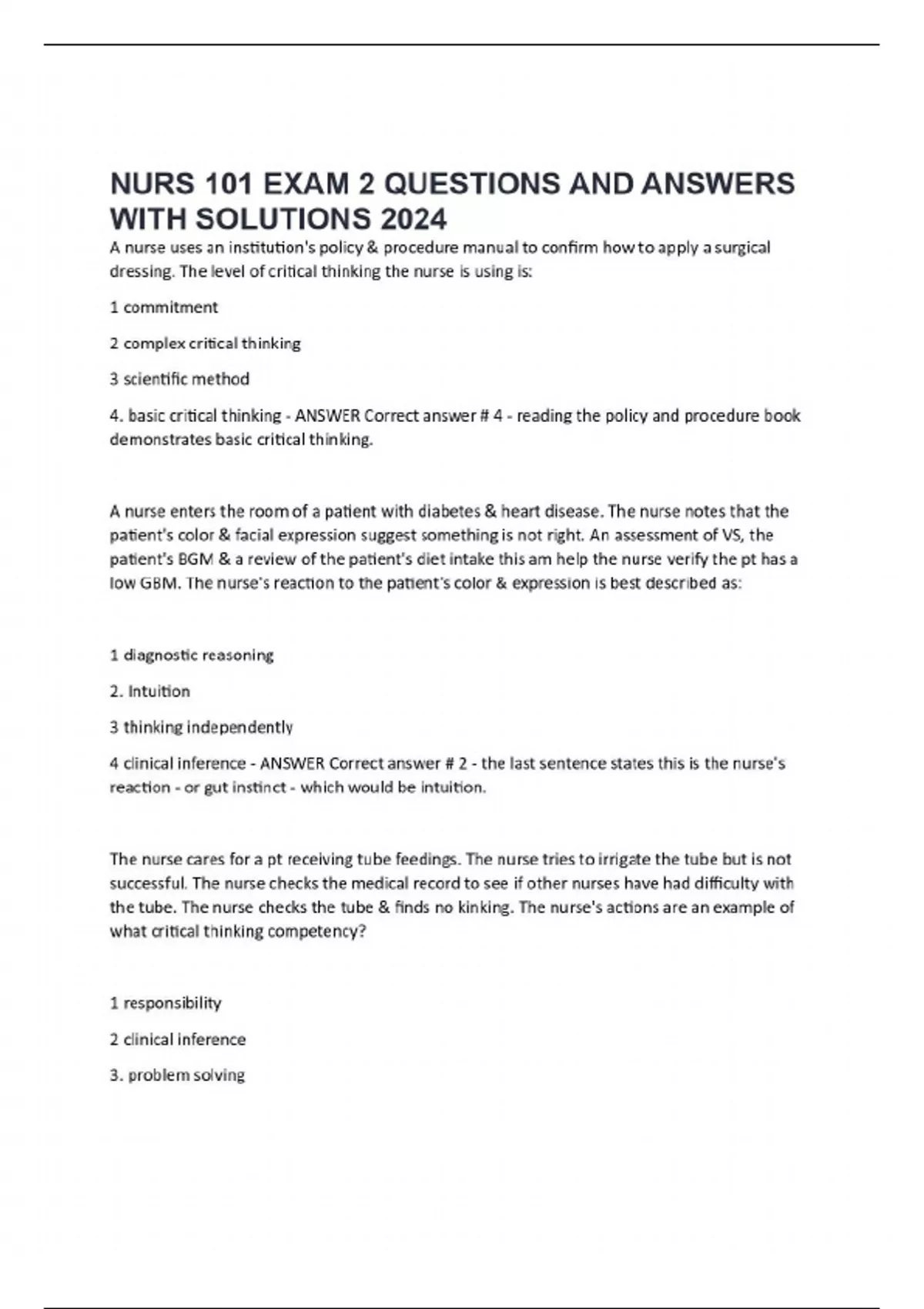 NURS 101 EXAM 2 QUESTIONS AND ANSWERS WITH SOLUTIONS 2024