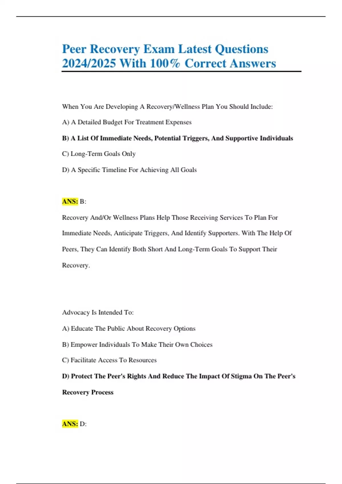 Recovery And/Or Wellness Plans Help Those Receiving Services To Plan For