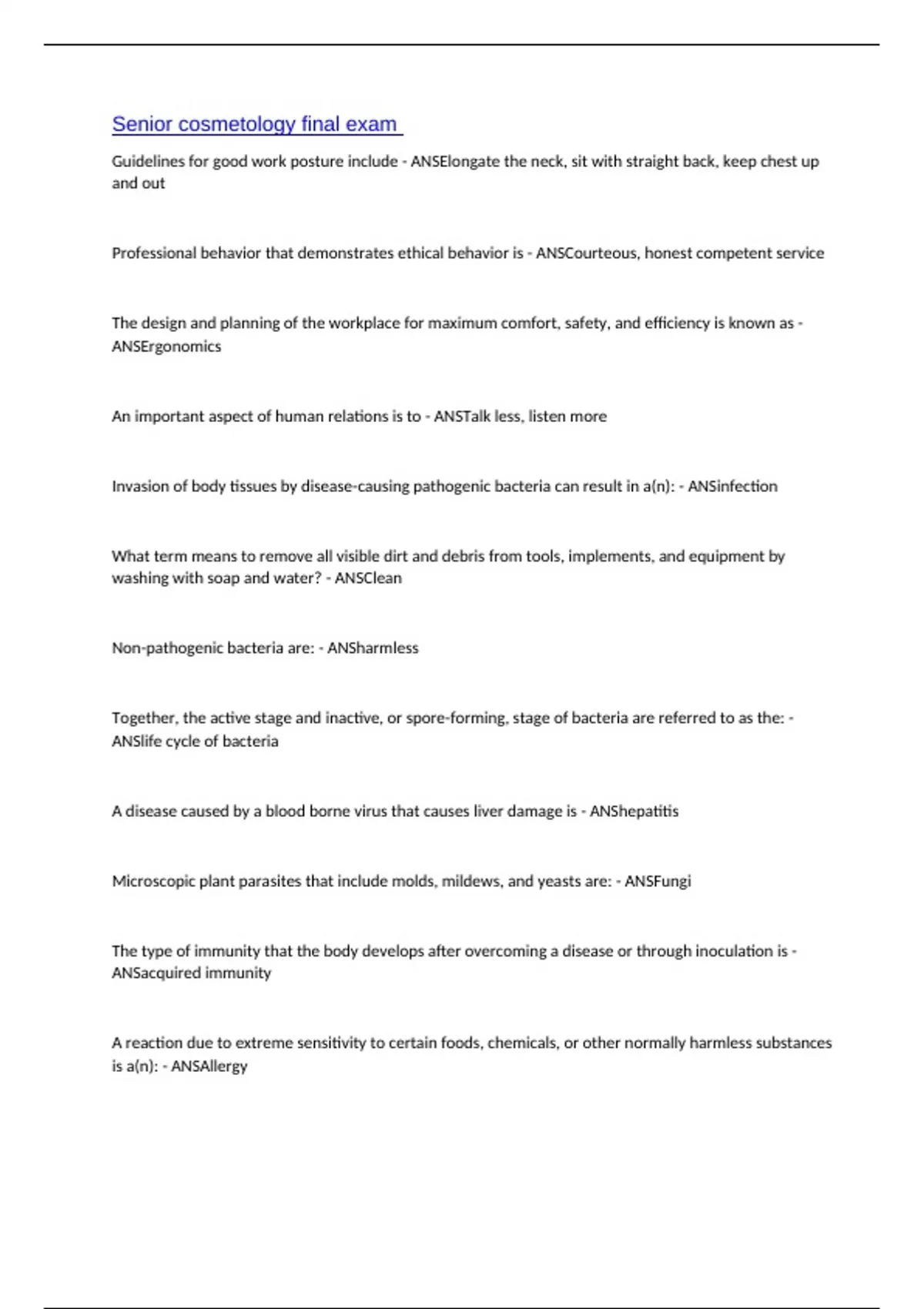Senior cosmetology final exam