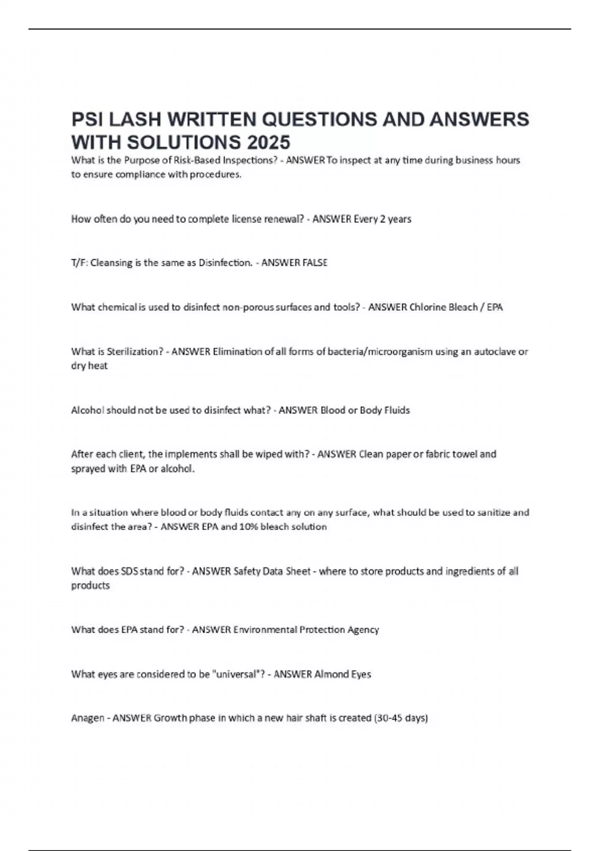 PSI LASH WRITTEN QUESTIONS AND ANSWERS WITH SOLUTIONS 2025