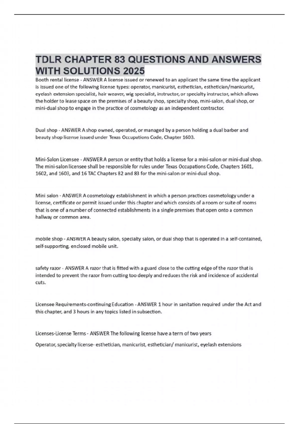 TDLR CHAPTER 83 QUESTIONS AND ANSWERS WITH SOLUTIONS 2025