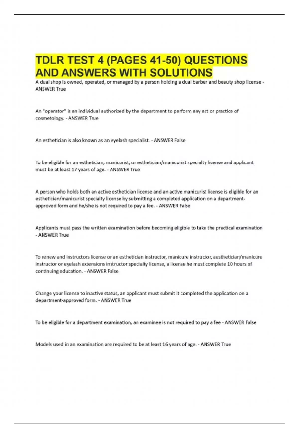 TDLR TEST 4 (PAGES 41-50) QUESTIONS AND ANSWERS WITH SOLUTIONS 2025