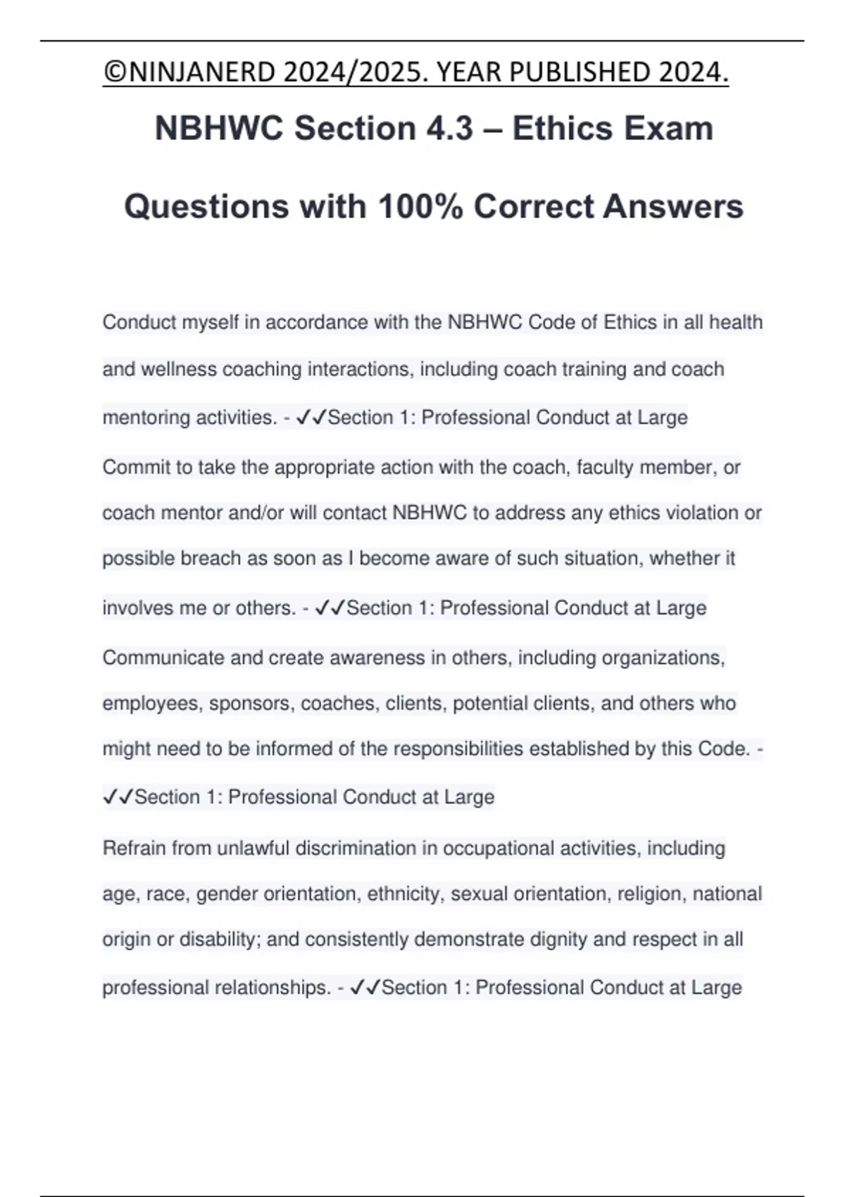 NBHWC. - ✔✔Section 1: Professional Conduct at Large