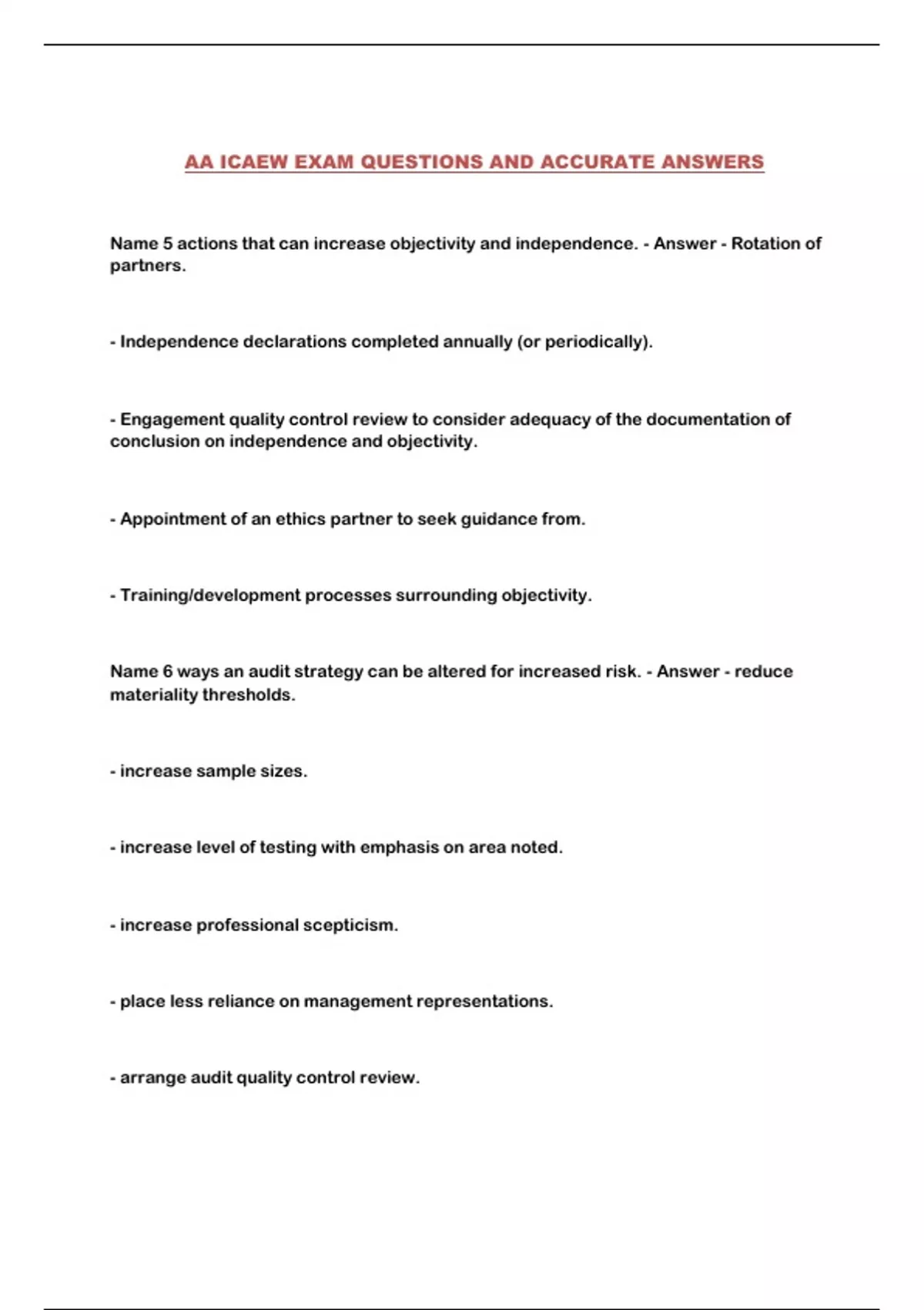 AA ICAEW EXAM QUESTIONS AND ACCURATE ANSWERS...