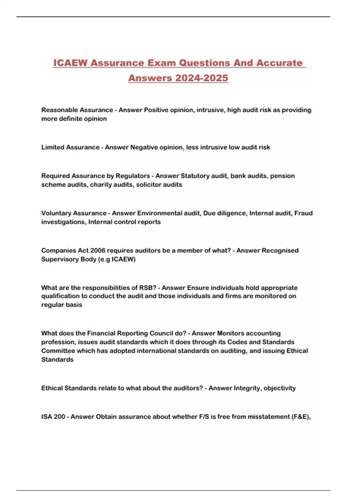 ICAEW Assurance Exam Questions And Accurate Answers ...