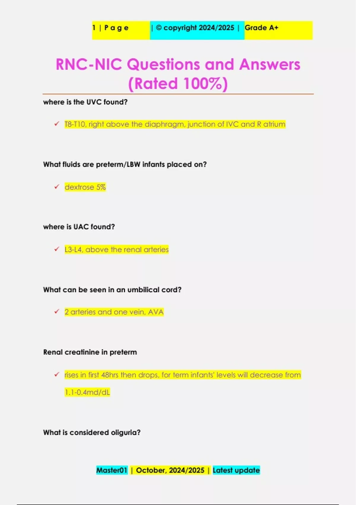 RNC-NIC Questions and Answers (Rated 100%)