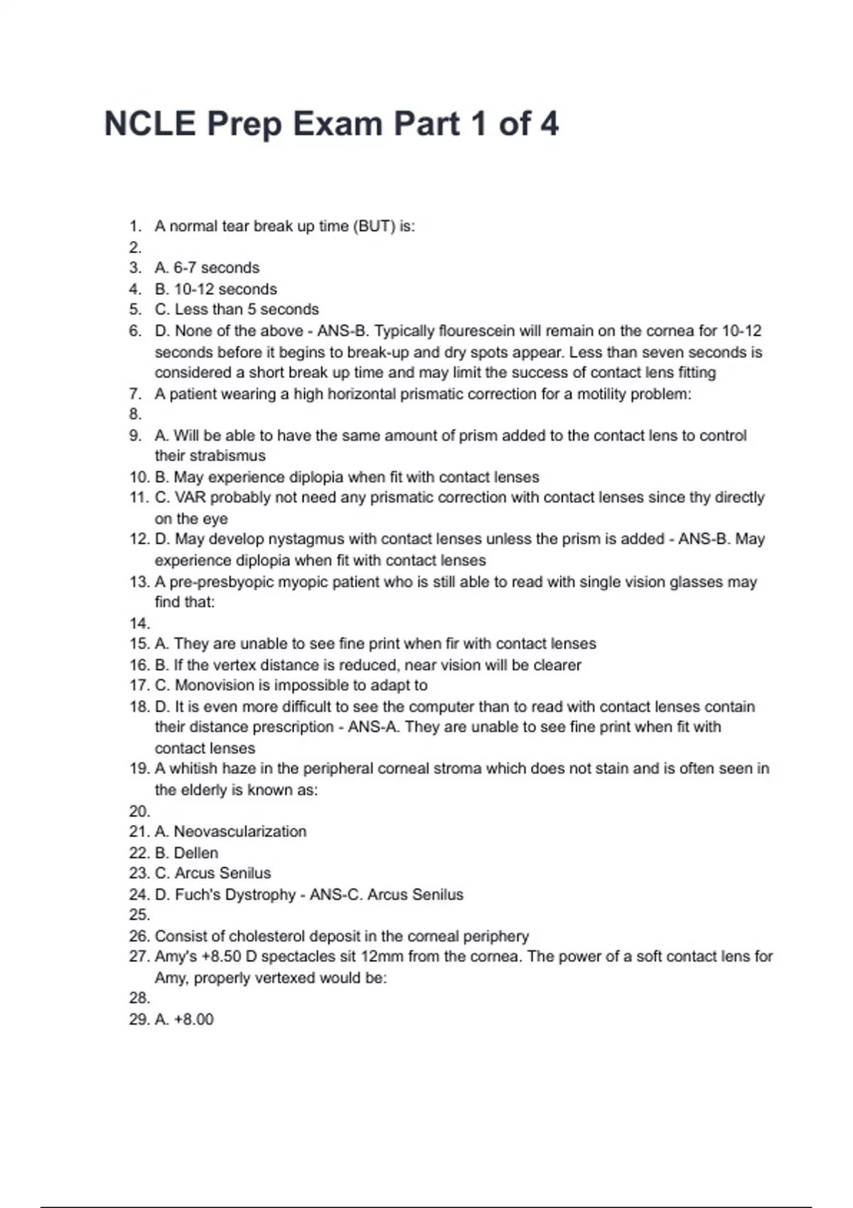 11. C. VAR probably not need any prismatic correction with contact lenses since thy directly