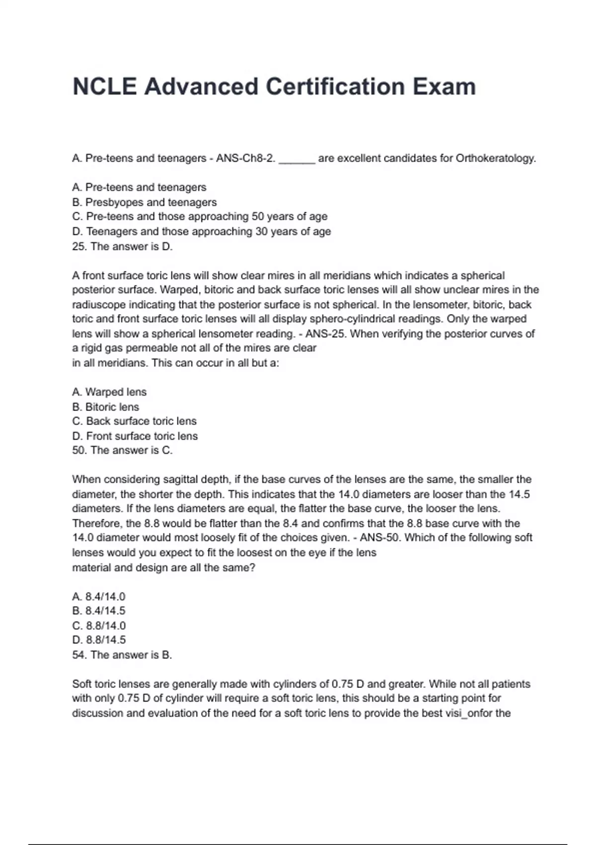 lens will show a spherical lensometer reading. - ANS-25. When verifying the posterior curves of