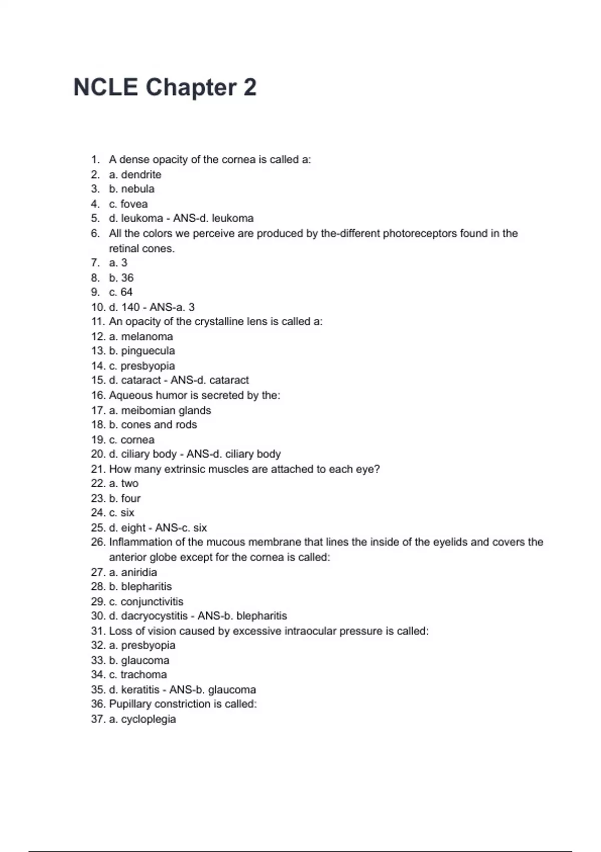 31. Loss of vision caused by excessive intraocular pressure is called: