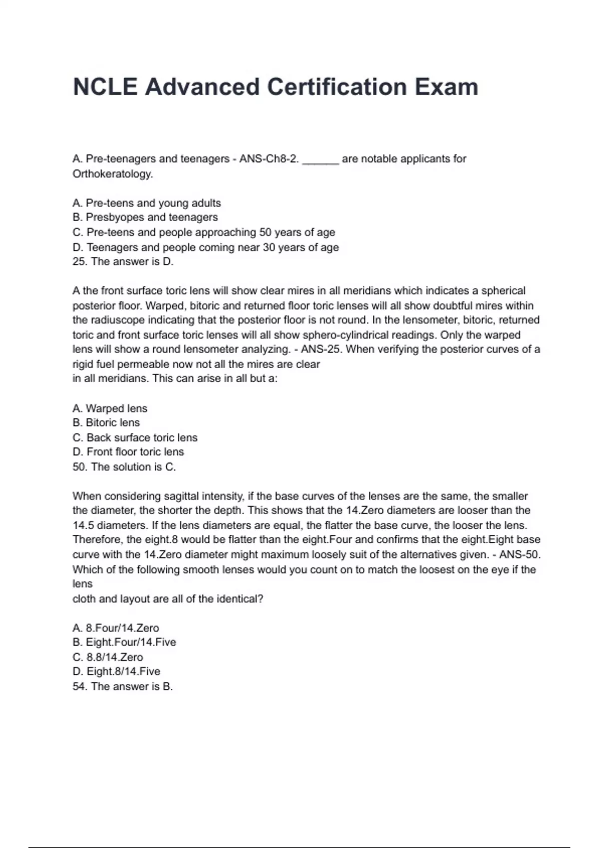 A. Air bubbles under the lens. - ANS-Ch4-nine. Prior to insertion, it's far crucial that the hybrid