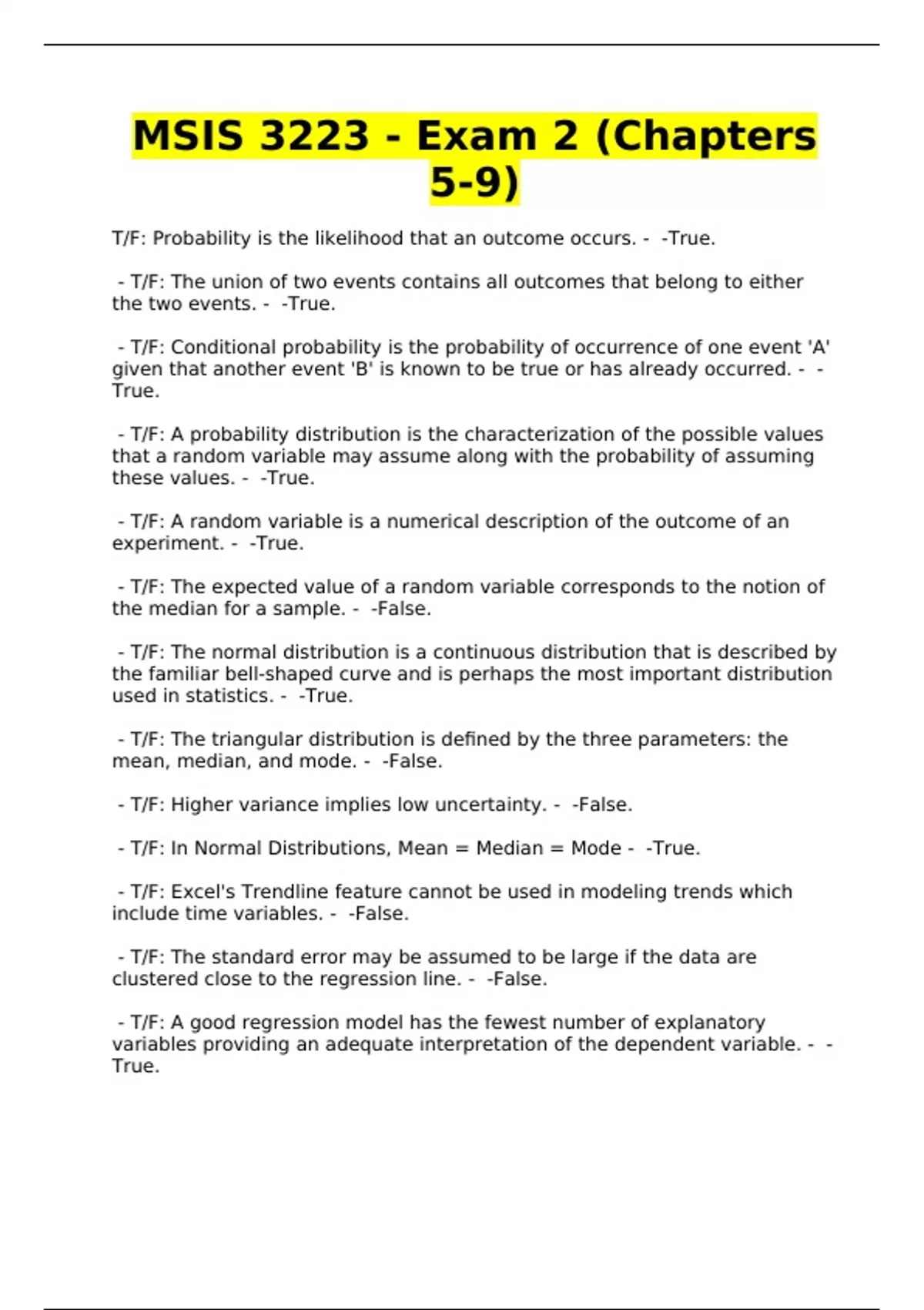 MSIS 3223 - Exam 2 (Chapters 5-9)