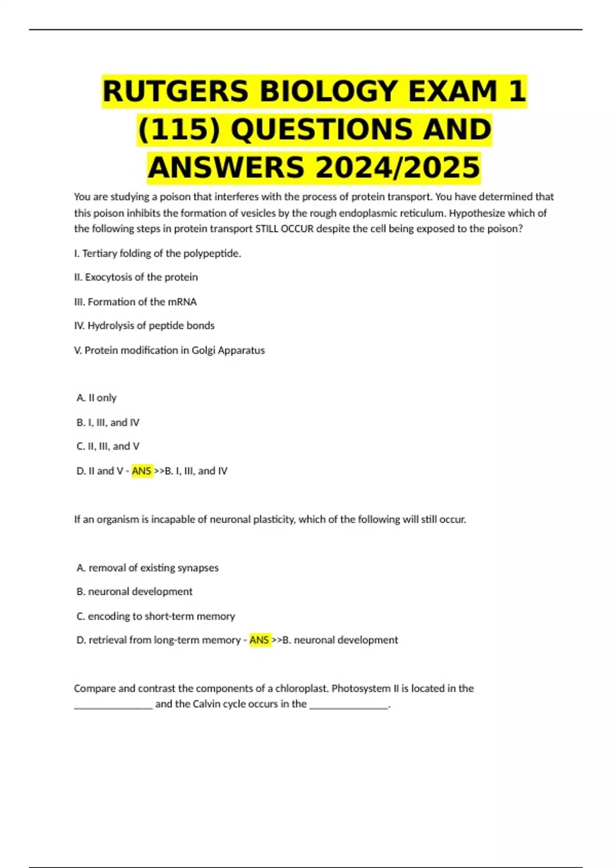 D. retrieval from long-term memory - ANS >>B. neuronal development