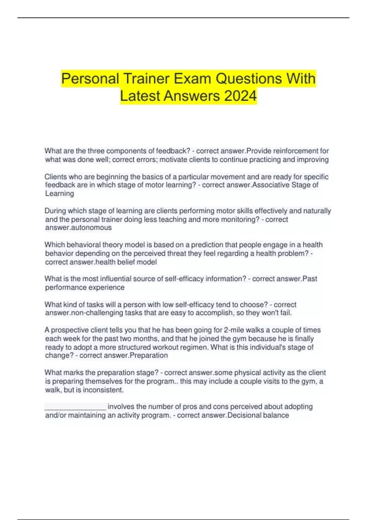 Personal Trainer Exam Questions With Latest Answers 2024