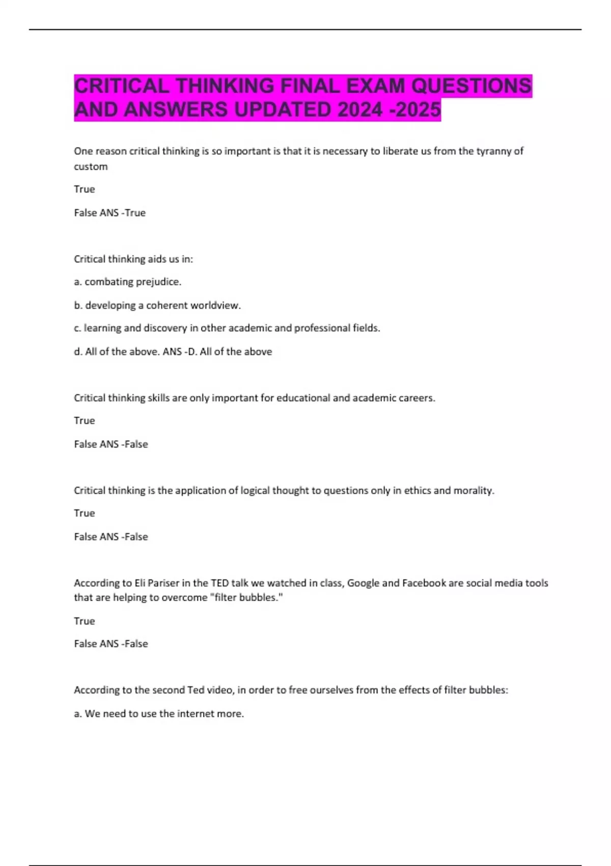 AND ANSWERS UPDATED 2024 -2025