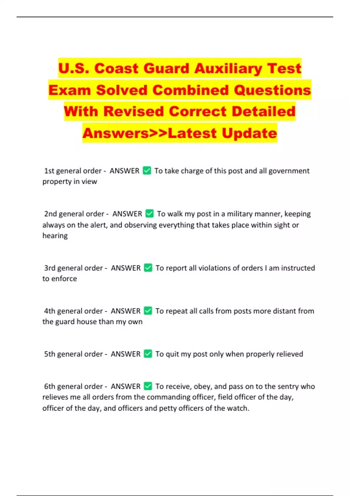 3rd general order - ANSWER To report all violations of orders I am instructed