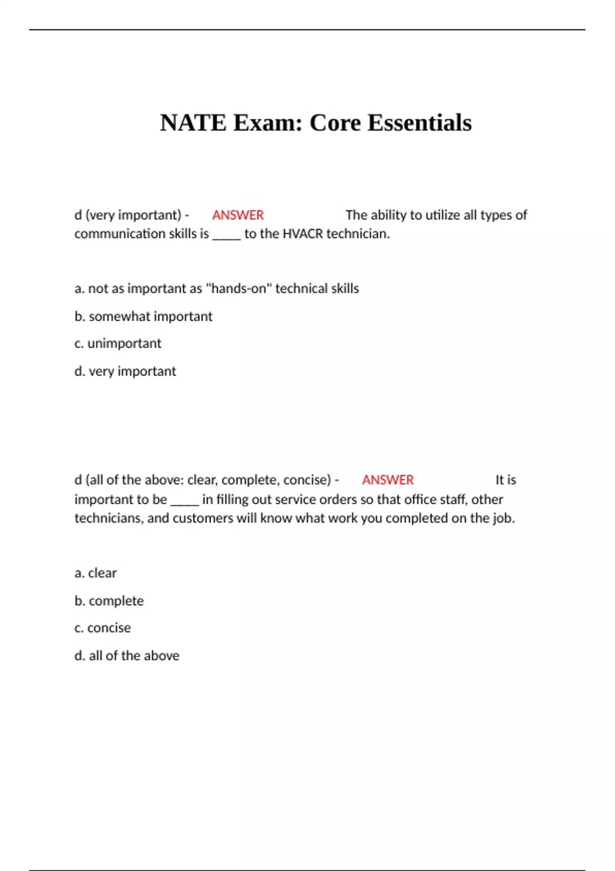 NATE Exam: Core Essentials NATE Exam: Core Essentials