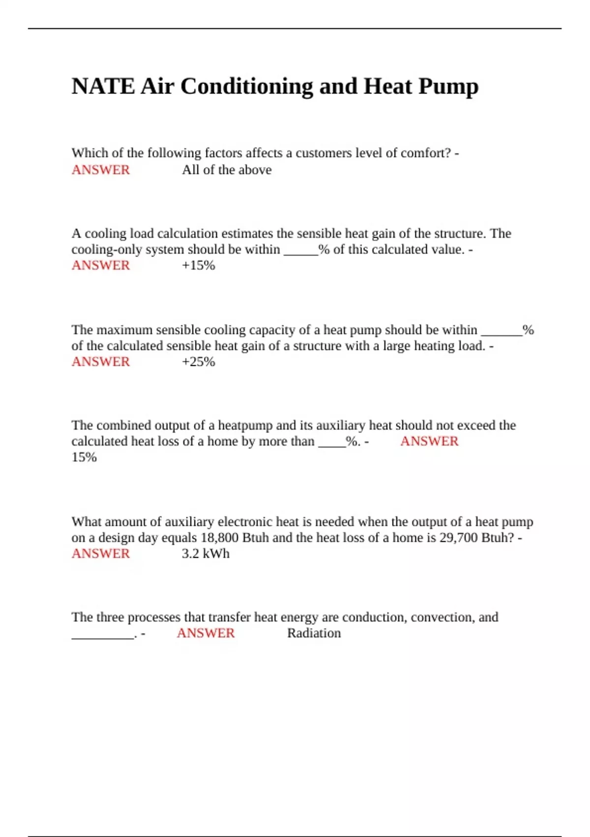 cooling-only system should be within _____% of this calculated value. -