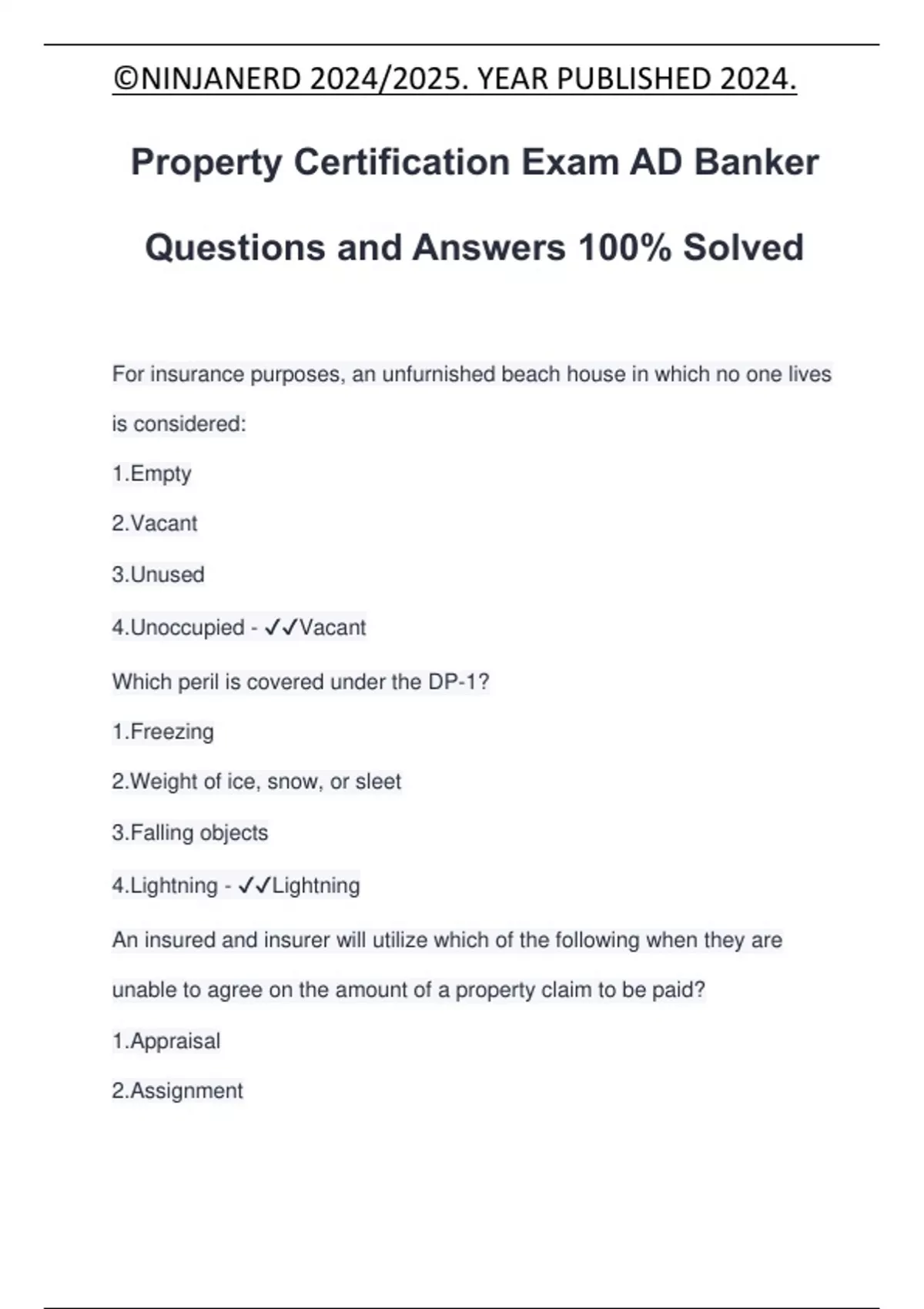 Property Certification Exam AD Banker