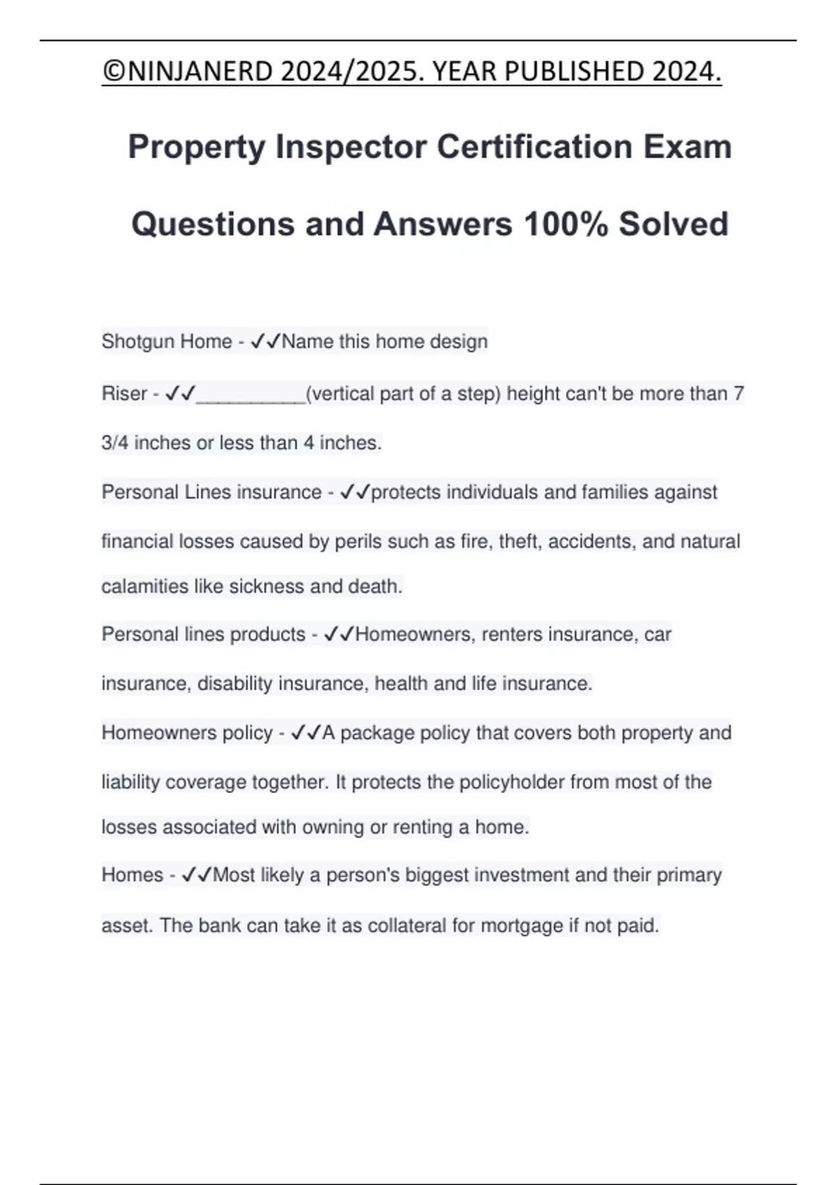 Property Inspector Certification Exam