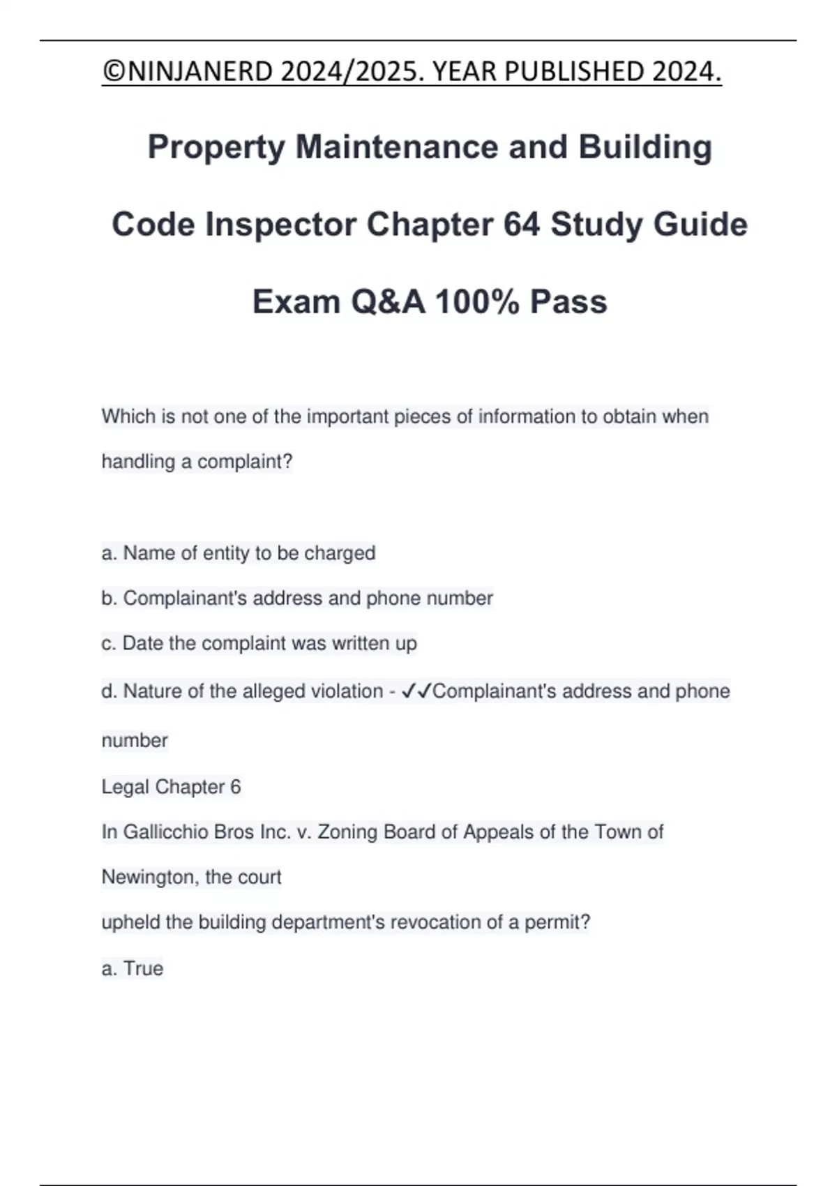 Code Inspector Chapter 64 Study Guide