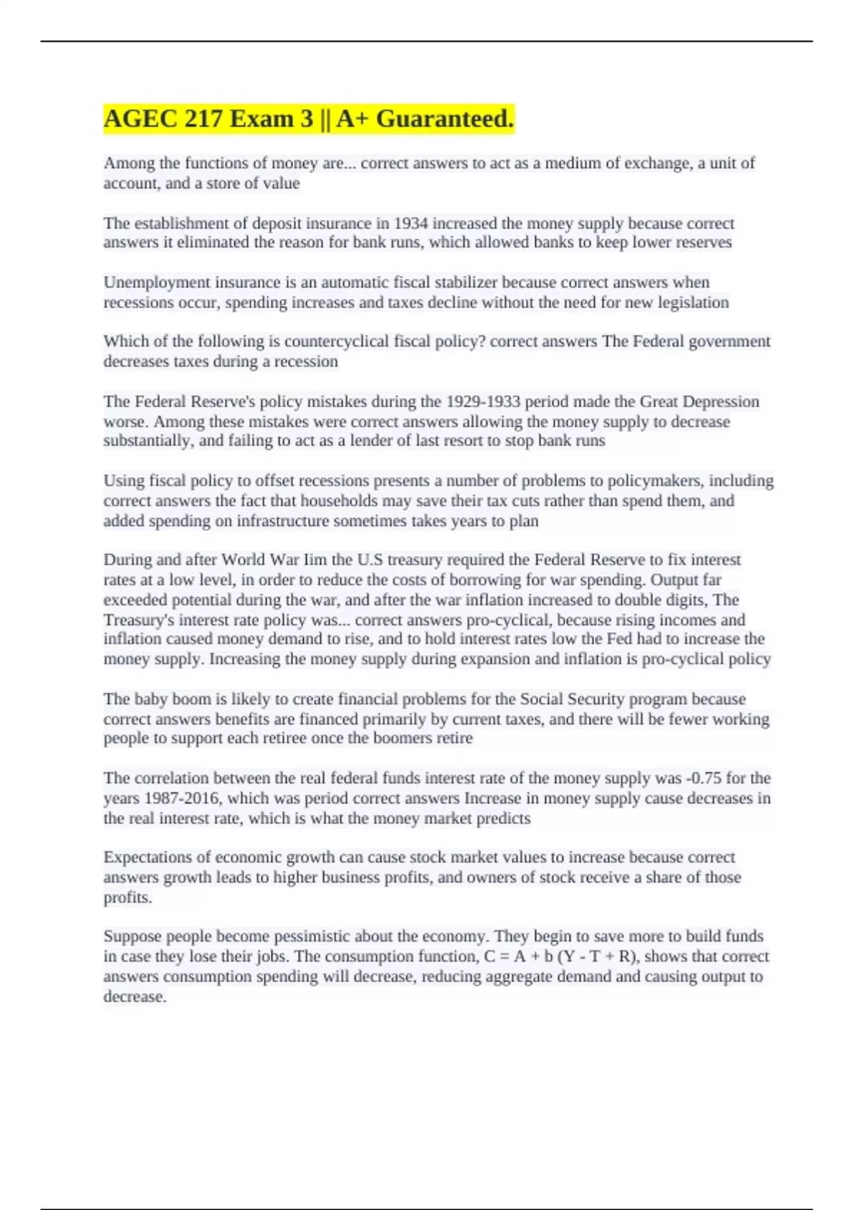 worse. Among these mistakes were correct answers allowing the money supply to decrease