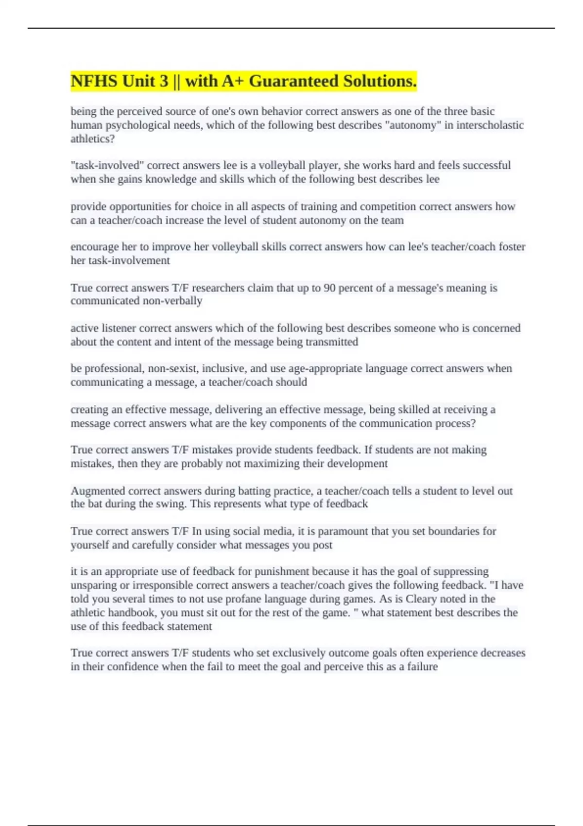 True correct answers T/F students who set exclusively outcome goals often experience decreases